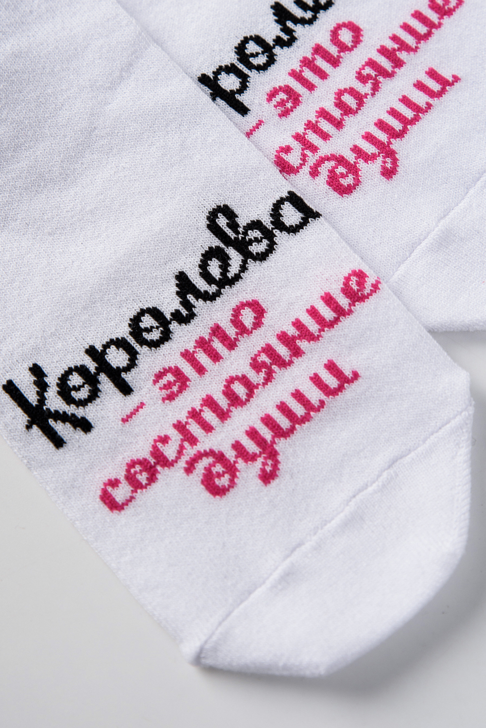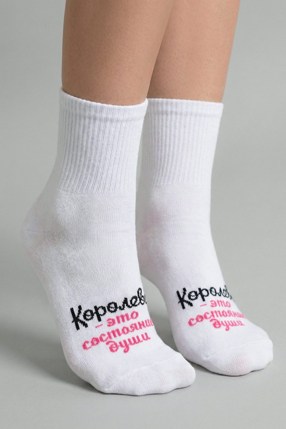 Добавьте изюминку в свой повседневный образ! Белые носки с яркой надписью «Королева – это состояние души» вдохновят на уверенность и поднимут настроение каждый день. Мягкий хлопок, идеальная посадка — выбирайте стиль, который говорит за вас! Подходят для подарка и для себя любимой.