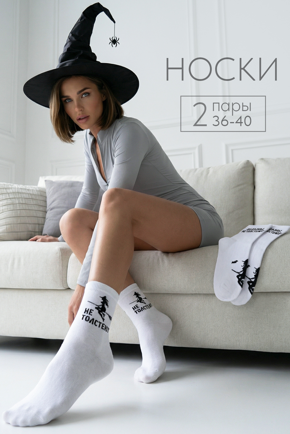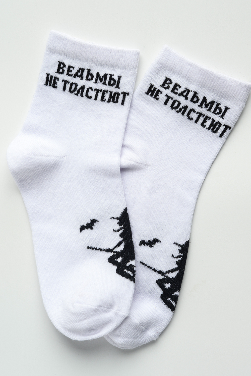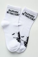 Женские носки “Ведьмы не толстеют” — стиль с характером! Пусть каждый ваш день будет окутан магией и уверенностью. Чёрные носки с дерзкой надписью и оригинальным принтом станут идеальным штрихом к вашему образу. Мягкий и приятный материал обеспечивает комфорт на весь день, а прочные резинки не сдавливают ногу. В комплекте 2 пары, размер 36–39. — Для тех, кто не боится выделяться и выбирает свою дорожку! — Добавьте немного волшебства и самоиронии в ваш гардероб!
