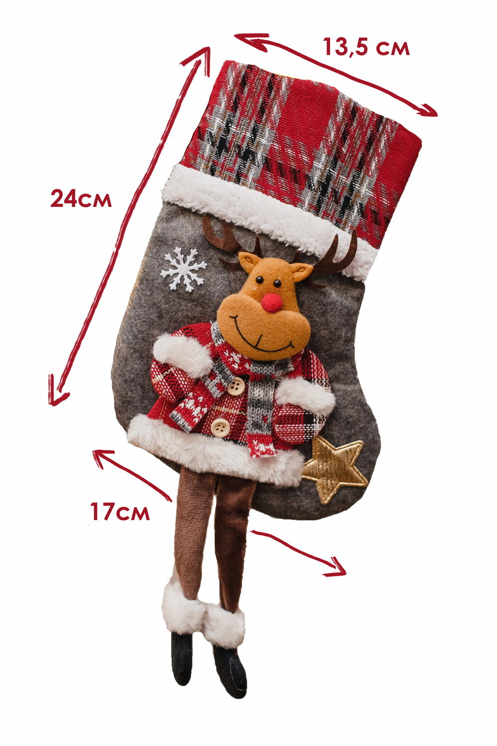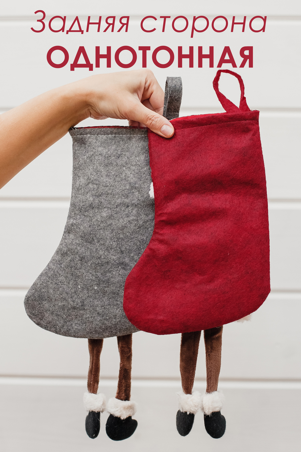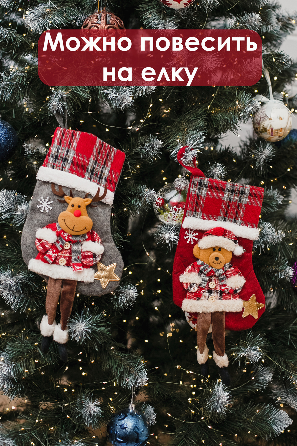 Подарочный носок?сапожок — это одновременно милый декор и удобная, экологичная упаковка для новогодних презентов. Корпус выполнен из плотной ткани. Аппликация — олень или мишка — вырезана и сшита из фетра, дополнена декоративной строчкой, помпонами и элементами, придающими лицам животных выразительность и объём. Главная фишка модели — висячие ножки. Ножки добавляют динамики при подвешивании и создают игривый акцент на камине, поручне или ёлке. Верхний край снабжён петлёй для подвеса. Это отличный выбор для семейной упаковки, корпоративных наборов и тематических подарков. Носок выглядит как самостоятельный подарок. Сапожек новогодний — не просто упаковка: он сам по себе становится частью подарка и может использоваться снова и снова.