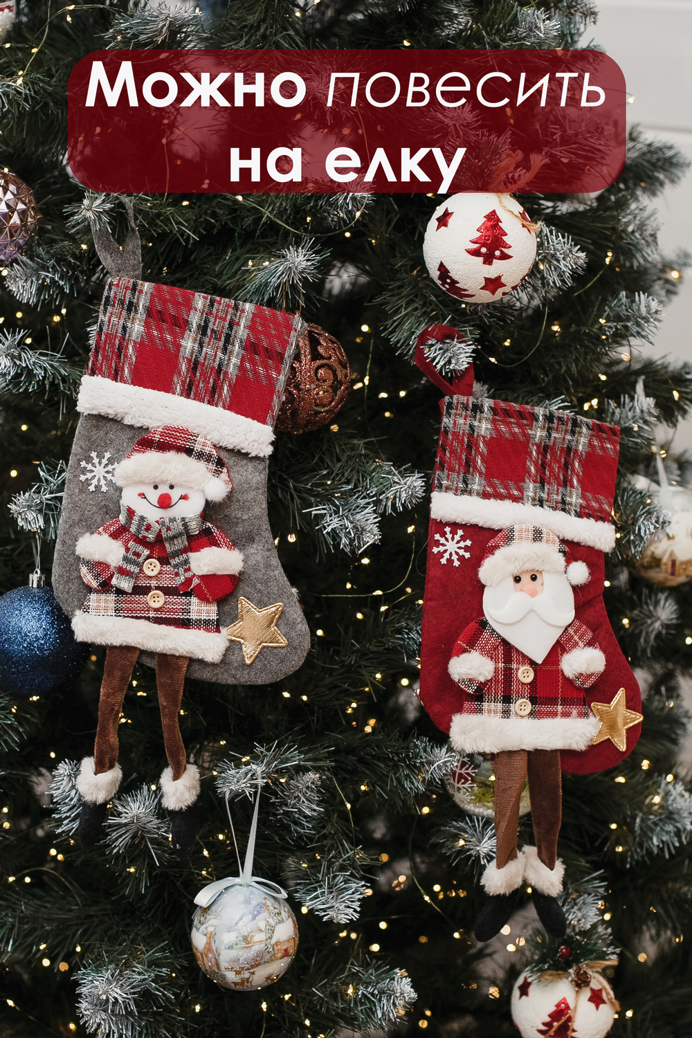 Подарочный носок?сапожок — это одновременно милый декор и удобная, экологичная упаковка для новогодних презентов. Корпус выполнен из плотной ткани. Аппликация — олень или мишка — вырезана и сшита из фетра, дополнена декоративной строчкой, помпонами и элементами, придающими лицам животных выразительность и объём. Главная фишка модели — висячие ножки. Ножки добавляют динамики при подвешивании и создают игривый акцент на камине, поручне или ёлке. Верхний край снабжён петлёй для подвеса. Это отличный выбор для семейной упаковки, корпоративных наборов и тематических подарков. Носок выглядит как самостоятельный подарок. Сапожек новогодний — не просто упаковка: он сам по себе становится частью подарка и может использоваться снова и снова.