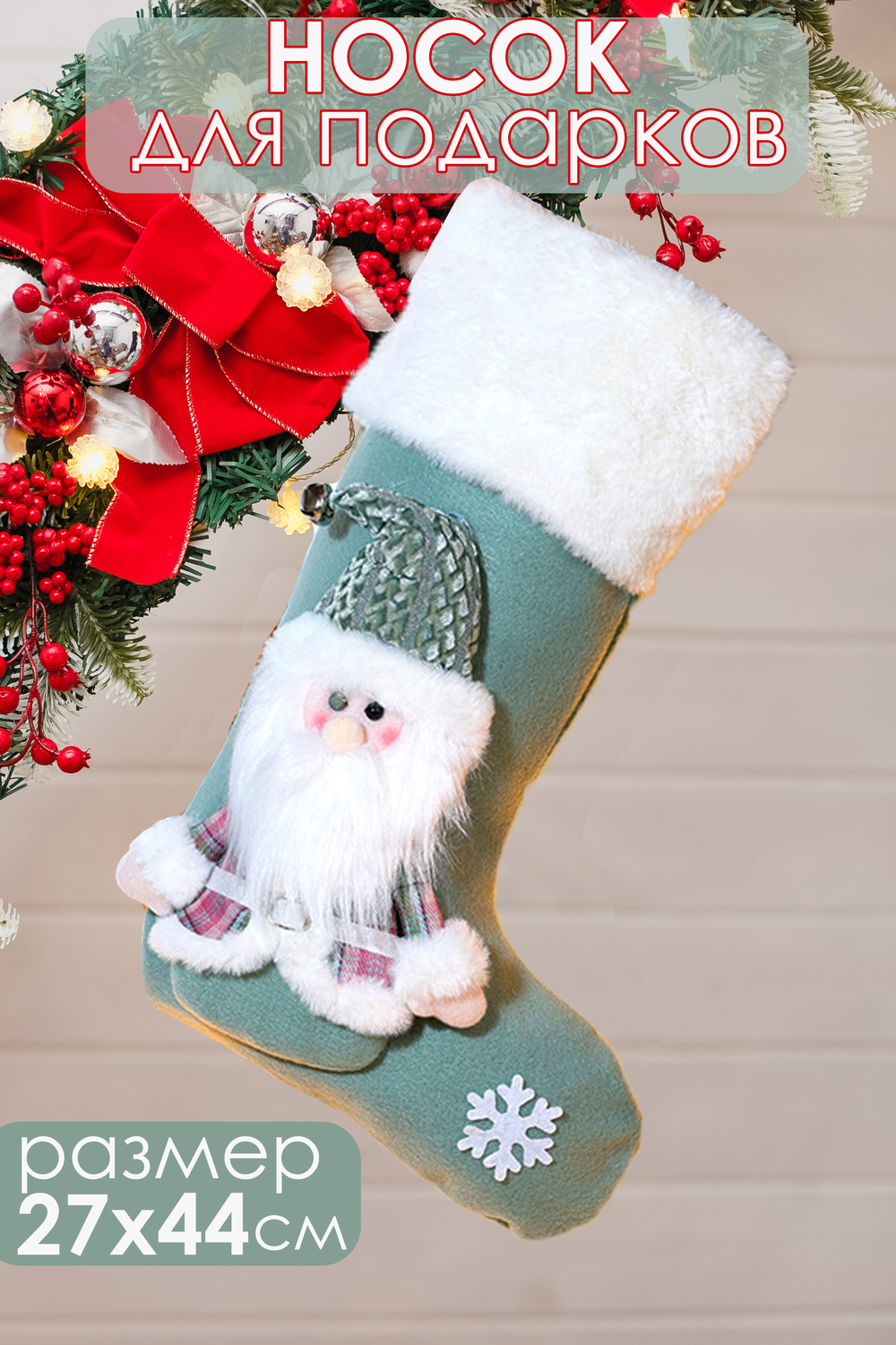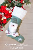 Новогодний носок для подарков зеленый Дед мороз 1 шт [зеленый]