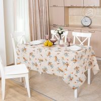 Скатерти из рогожки практичны, долговечны и просты в уходе. Они являются неотъемлемым атрибутом для создания комфортной и уютной обстановки на кухне. Изделия из 100% хлопка украшены необычным авторским принтом, который ассоциируется с летом. Оригинальный рисунок с облепихой дарит приятные воспоминания о солнечных деньках, летних красках и чудесном аромате ярких ягод. Это приятный сюрприз для оформления интерьера.