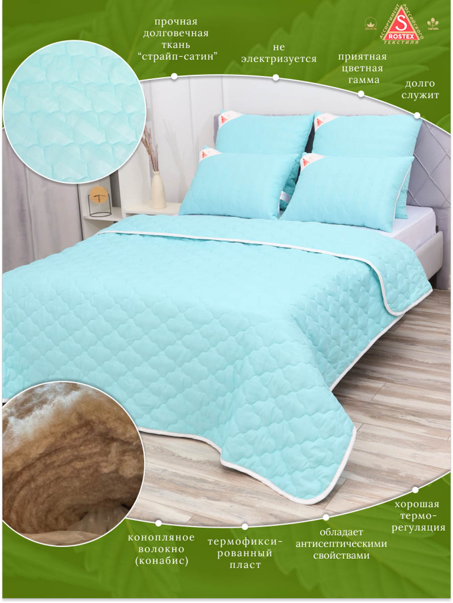 Одеяло Конопляное волокно, стёганное на многоигольной машине, наполнитель натуральное термоскреплённое волокно промышленного канабиса пласт. Конопляное волокно-это один из самых натуральных материалов. Текстильные изделия по своим свойствам превосходят все остальные, включая хлопок и другие волокна. Волокно обладает антибактериальными и ранозаживляющими свойствами. Гипоаллергенное ,идеально обсарбирует влагу и способствует естественной циркуляции воздуха. Самый прочный и долговечный материал в мире.