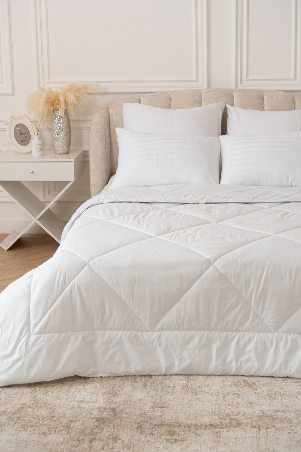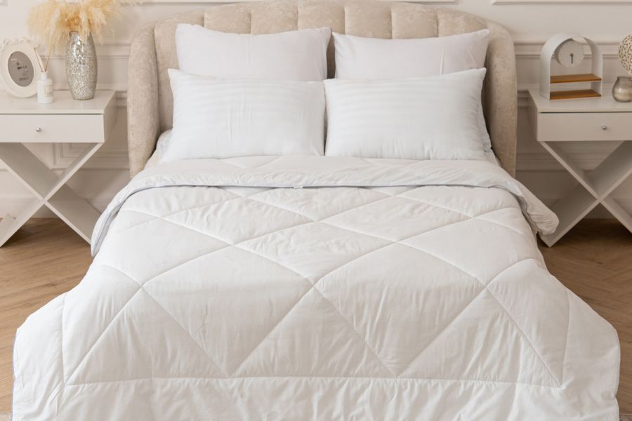 Характеристики Плотность 115+-5 г/м2 Состав 100% хлопок Состав наполнителя 100% полиэфирное волокно Ткань Поплин Наполнитель Лебяжий пух (искусственный наполнитель) Отделка Кант Описание Лебяжий пух – это искусственный материал на основе синтетического микроволокна. Основным его достоинством является то, что он практически идентично воспроизводит свойства натурального пуха, а по некоторым параметрам и превосходит его: одеяло из лебяжьего пуха прекрасно держит форму, не скатывается в комки и достаточно легкое по весу. Поскольку материал синтетичен, то перспектива появления клещей и плесени вашей подушке не грозит. Одеяло из «лебяжьего пуха» абсолютно безопасно для людей, страдающих аллергией.