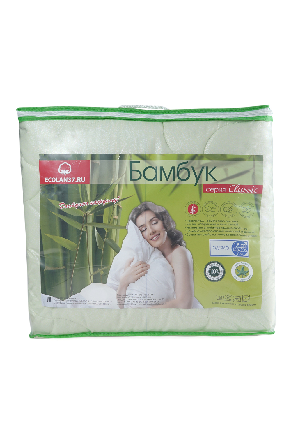 Размеры: 1,5сп - 140х205см, 2сп - 170х205см, евро1 - 200х220см, евро2 - 220х240см, ткань - полиэстер, наполнитель - бамбуковое волокно 50%, полиэфирное волокно 50%, плотность - 300гр/м, упаковка - чемодан на молнии Современный, комфортный и безопасный наполнитель из натурального бамбука, из которого создаются бамбуковые одеяла, обладает оптимальным сочетанием стоимости и качественных характеристик.