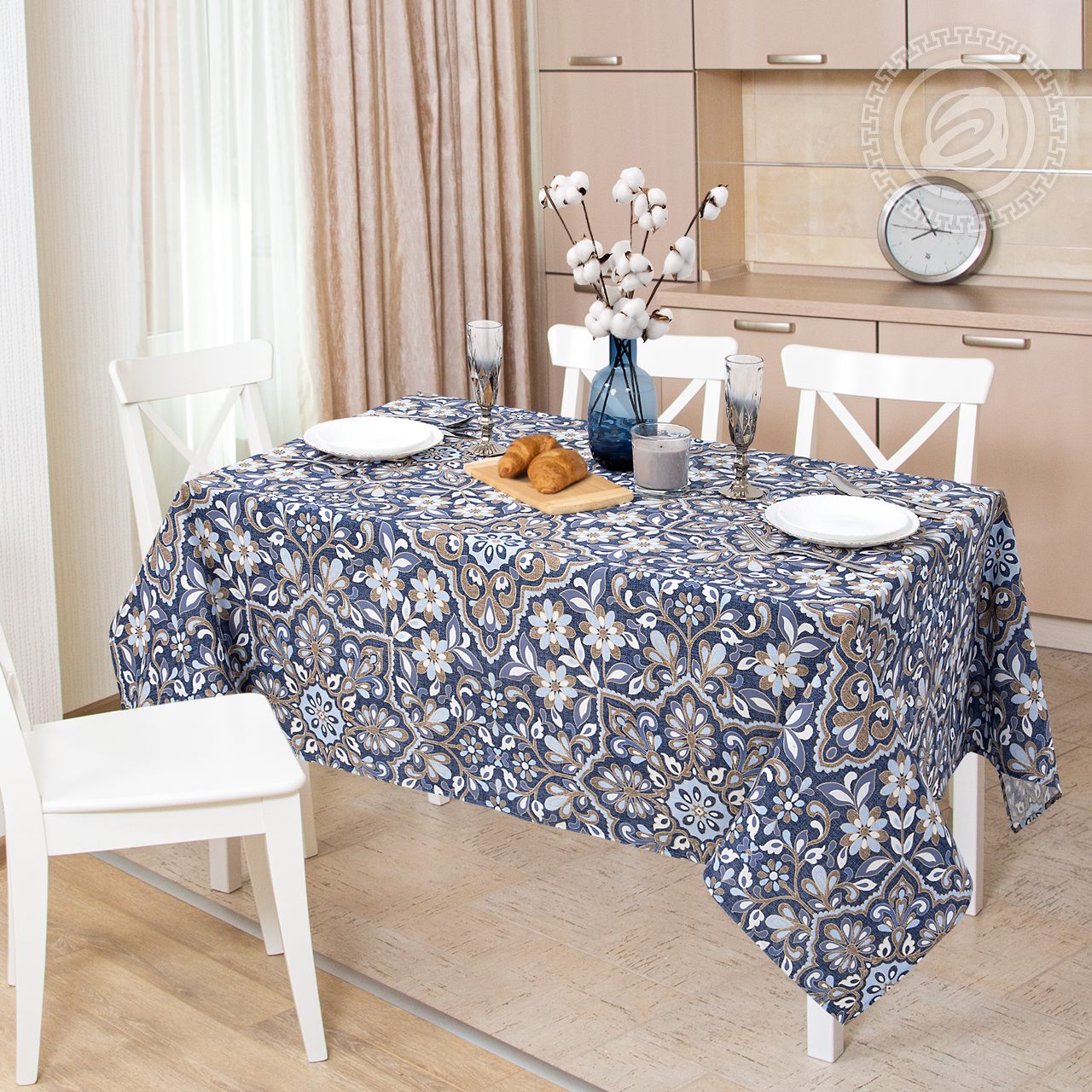 Скатерть из рогожки «Парма» украшена уникальным авторским дизайном. Перед нами оригинальная композиция, которая выполнена мастерски и искусно. Лепестки и бутоны образуют волшебные цветочные узоры, будто сошедшие со страниц сказок. Изделия из рогожки с цветочным принтом станут ярким акцентом в интерьере и создадут обстановку семейного уюта.