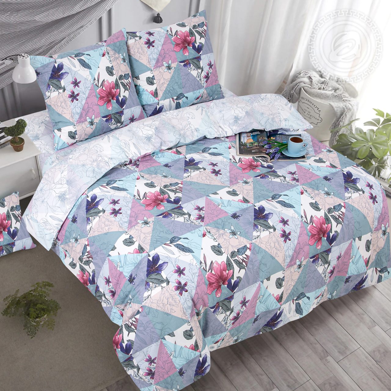 Постельное белье пэчворк всегда в тренде. С давних времен оно пользуется популярностью и является оригинальным декором интерьера. На комплекте из поплина интересный принт, который выполнен в стилистике лоскутной мозаики. Здесь ромбы, словно лоскутки, соединены между собой. Все фигуры в нежных тонах и украшены изящными лепестками. «Пэчворк» олицетворяет изысканность, женственность, романтичность. Это модное постельное белье из 100% хлопка, которое покорит ваши сердца.
