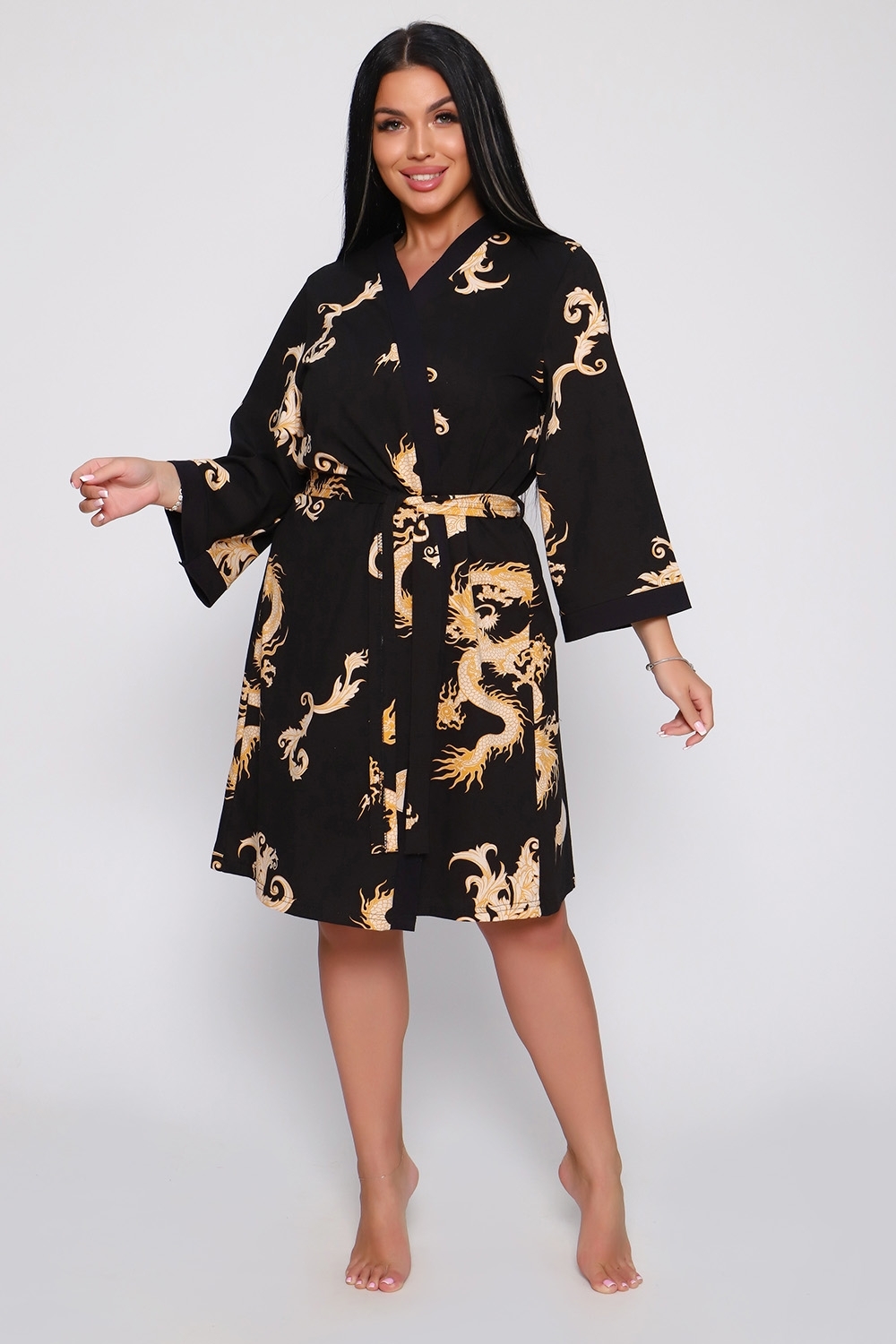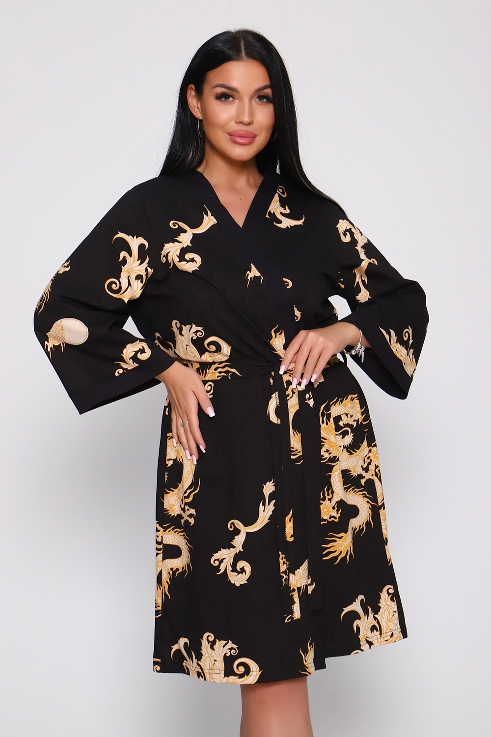 Женский пеньюар и сорочка "Драконы" Изготовлены из легкого, приятного на ощупь натурального хлопка. Элегантный домашний наряд включает халат на запах и легкую ночную сорочку. Халат свободного кроя с поясом, рукава 3/4, длина до колена — идеально для комфортных и стильных будней. Сорочка на тонких бретелях — создаст романтичный образ. Широкий размерный ряд. Наслаждайтесь уютом и стилем дома!