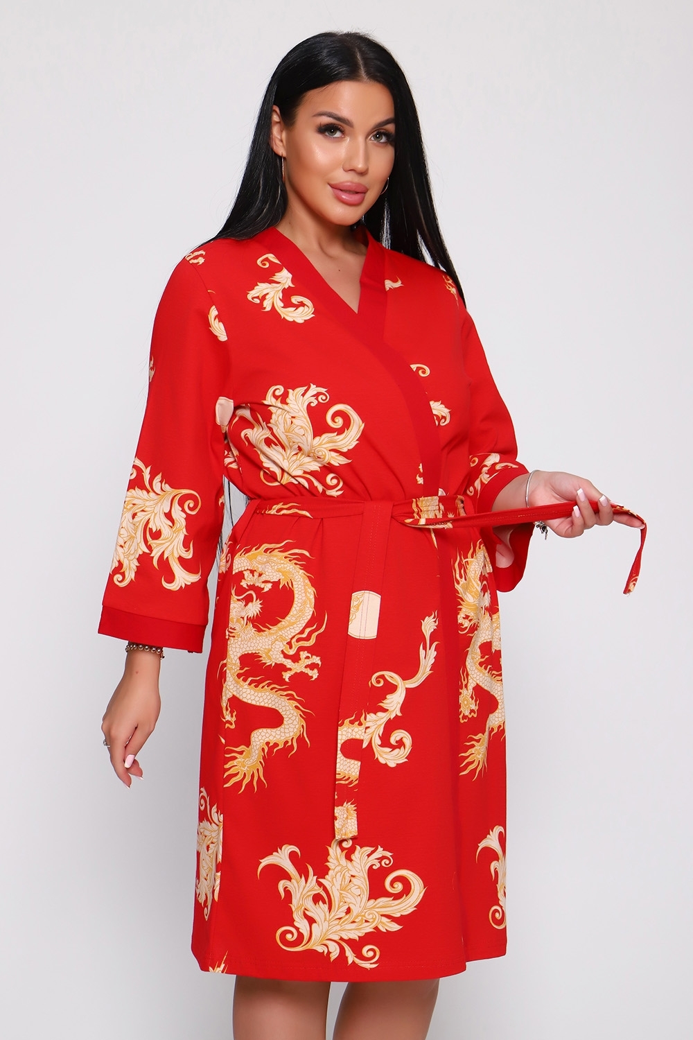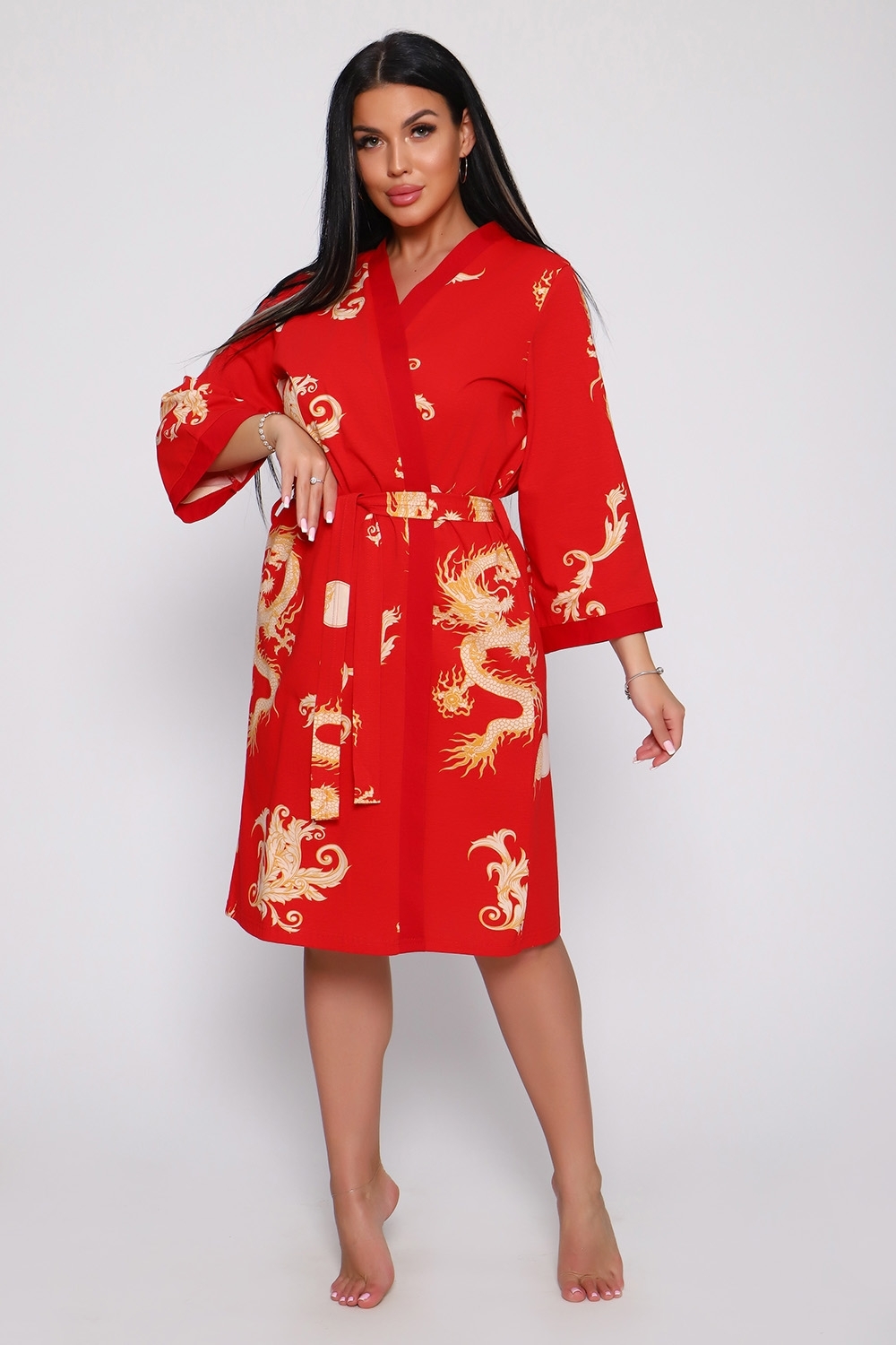 Женский пеньюар и сорочка "Драконы" Изготовлены из легкого, приятного на ощупь натурального хлопка. Элегантный домашний наряд включает халат на запах и легкую ночную сорочку. Халат свободного кроя с поясом, рукава 3/4, длина до колена — идеально для комфортных и стильных будней. Сорочка на тонких бретелях — создаст романтичный образ. Широкий размерный ряд. Наслаждайтесь уютом и стилем дома!