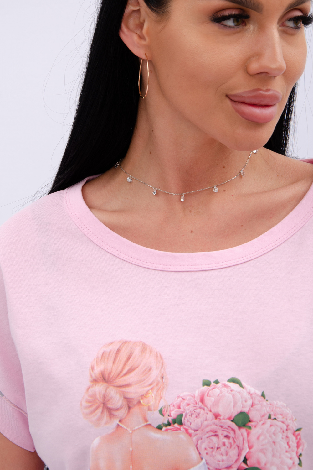 Пижама женская состоит из футболки с коротким рукавом и шортов. Футболка из однотонной кулирки с красивым принтом, шорты свободного покроя из ткани кулирка.