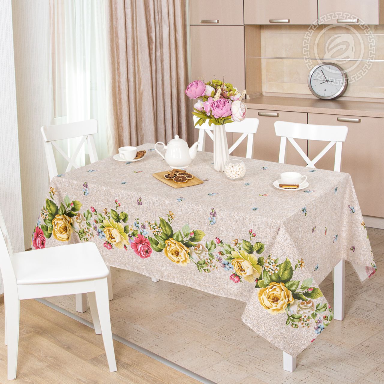 Вы любите пионы? Представляем вам весенне-летнюю композицию с цветочным узором. На кухонной скатерти из рогожки живописный принт с изящными пионами. Для них выбрана нежная гамма оттенков и легкое обрамление в виде утонченных ажурных завитков. Маленькое произведение искусства для Вашей кухни!