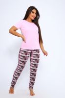 Костюм женский домашний с брюками в пижамном стиле выполнен из хлопка 100%. Футболка с коротким рукавом, брюки в клетку на резинке. Костюм идеально подойдет для дома и сна.