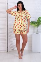 Женская пижама с рубашкой и шортами с атласным кантом. Отличный домашний комплект, изготовлен из 100% хлопка, который позволит вашей коже дышать и не будет стеснять ваши движения благодаря мягкой трикотажной ткани. Пижама послужит прекрасным подарком для себя, коллеги и любимым дочке или сестре! Наша модель подойдет под все типы фигур и телосложений. Комплект одежды женский рубашка и шорты с атласным кантом - это пижама для женщин и девочек подростков.