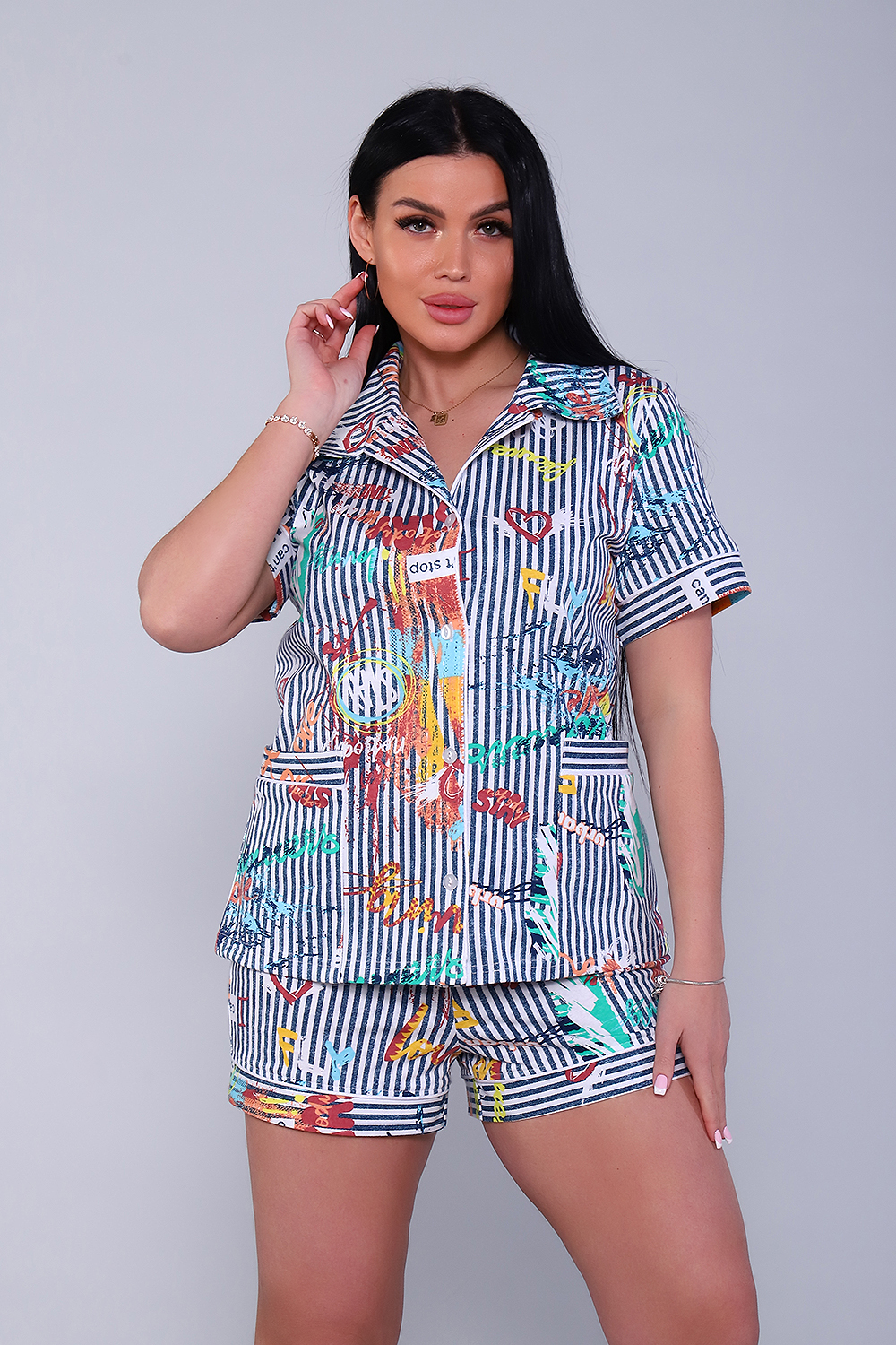 Женская пижама с шортами, атласным кантом идеальна для семейной фотосессии, она послужит прекрасным подарком для себя, коллеги и любимым дочке или сестре! Это домашний комплект с шортами, состоящий из 100% хлопка, который позволит вашей коже дышать и не будет стеснять ваши движения благодаря мягкой трикотажной ткани. Это очень удобно, ведь наш товар представлен не только как ночная одежда для взрослых, но и как дневная одежда. Наша модель подойдет под все типы фигур и телосложений. Комплект одежды женский рубашка и шорты с атласным кантом - это пижама для женщин и девочек подростков.