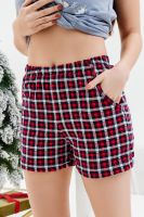 Пижама женская с новогодним принтом - майка с шортами. На шортах боковые карманы. Горловина и пройма обработаны кантом с нитками разной колористики под цвет принта.