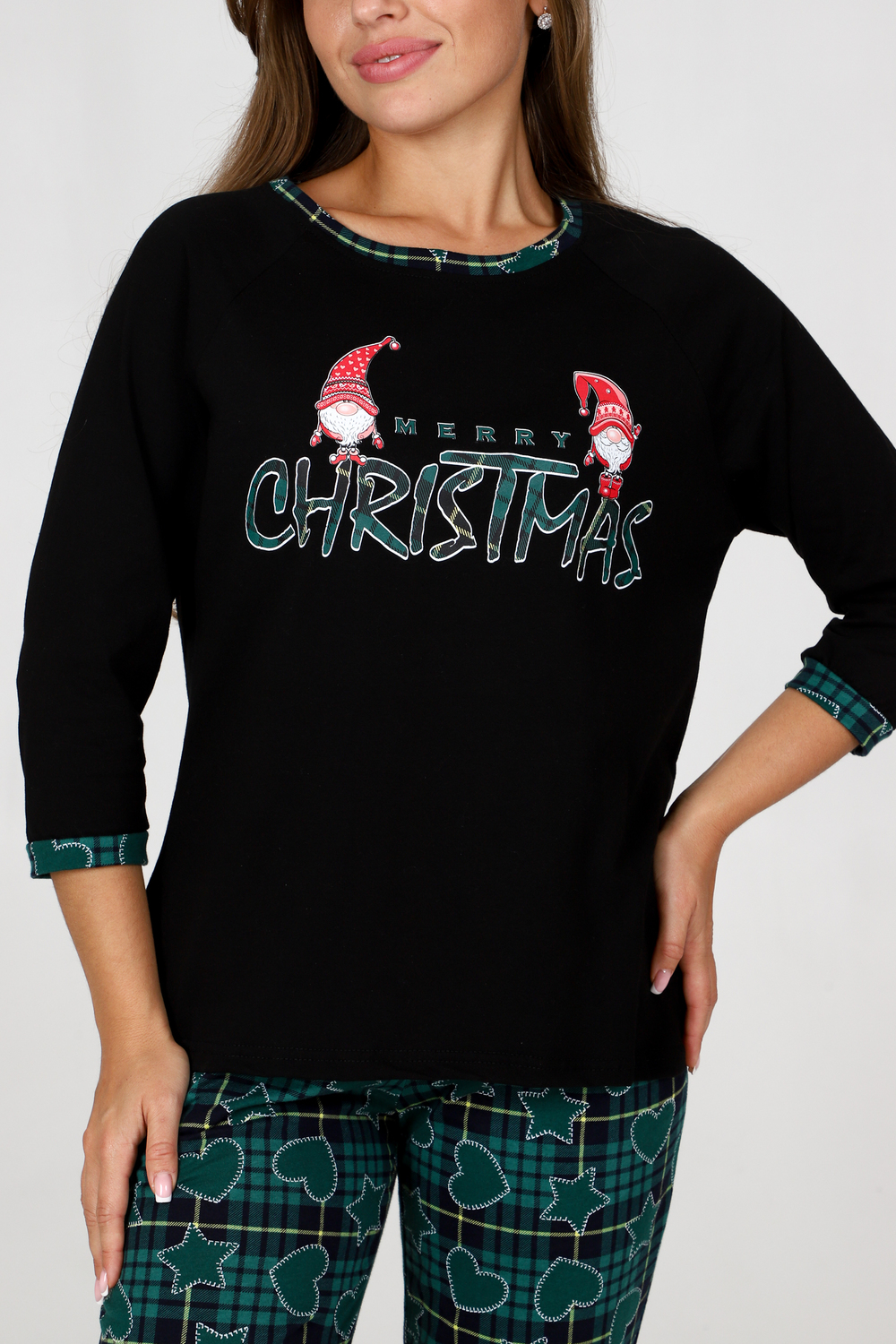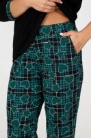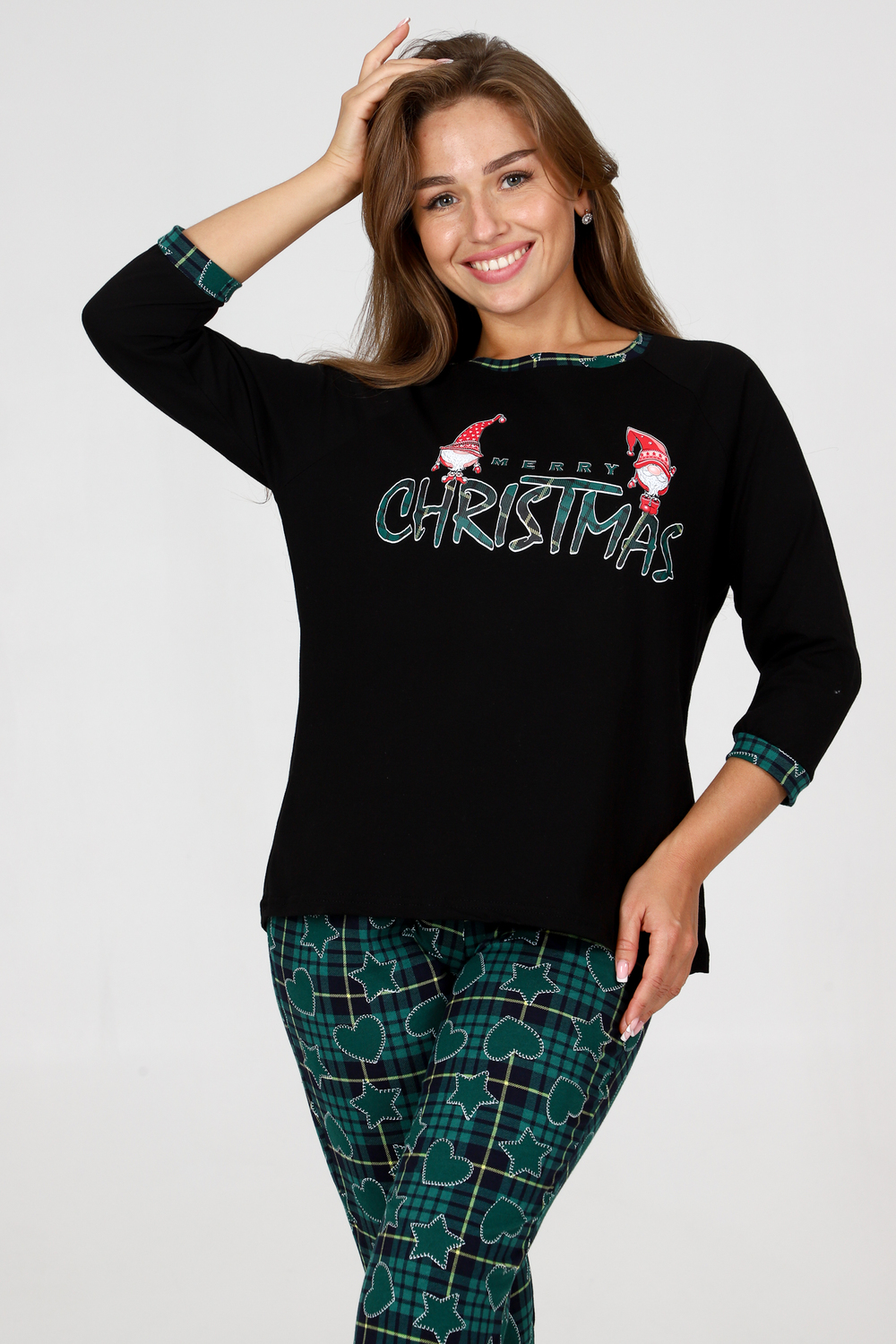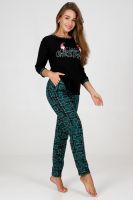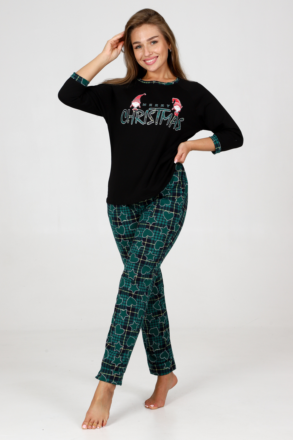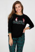 Пижама женская удобная и уютная вещь на каждый день. Джемпер с отделкой обтачки и манжеты контрастной тканью, стильная печать на груди, брюки зауженного кроя с карманами, манжеты внизу брюк.