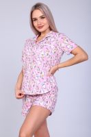 Уютная стильная пижама женская состоит из шорт и рубашки. Рубашка с короткими рукавами, полуприлегающего силуэта, на пуговицах, с воротником в английском стиле, обработанным атласным кантом. Шорты комфортной ширины. Классическая расцветка, натуральная ткань, полуприлегающий силуэт. Комплект женский может использоваться и как домашний костюм. Он также станет отличным приобретением для беременных и кормящих женщин, в подарок, маме, сестре, бабушке, подруге