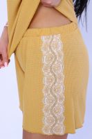 Пижама женская с эластичным кружевом-реснички выполнена из качественного, приятного к телу трикотажа СОТЫ. Комплект состоит из топа на узких бретелях и шорт. Привлекательный, комфортный топ с кокеткой на груди из эластичного кружева гармонично сочетается с шортами, украшенными по бокам кружевом. Пижама станет Вашим незаменимым элементом для отдыха и сна, вы будете чувствовать себя уютно и модно. Модель представлена в широкой палитре цветов, что позволит подобрать вещь на любой вкус и стиль, а также подчеркнет женственность и романтичность вашего образа.
