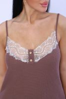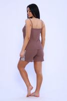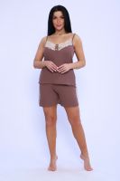 Пижама женская с эластичным кружевом-реснички выполнена из качественного, приятного к телу трикотажа СОТЫ. Комплект состоит из топа на узких бретелях и шорт. Привлекательный, комфортный топ с кокеткой на груди из эластичного кружева гармонично сочетается с шортами, украшенными по бокам кружевом. Пижама станет Вашим незаменимым элементом для отдыха и сна, вы будете чувствовать себя уютно и модно. Модель представлена в широкой палитре цветов, что позволит подобрать вещь на любой вкус и стиль, а также подчеркнет женственность и романтичность вашего образа.