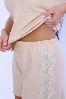 Пижама женская с эластичным кружевом-реснички выполнена из качественного, приятного к телу трикотажа СОТЫ. Комплект состоит из топа на узких бретелях и шорт. Привлекательный, комфортный топ с кокеткой на груди из эластичного кружева гармонично сочетается с шортами, украшенными по бокам кружевом. Пижама станет Вашим незаменимым элементом для отдыха и сна, вы будете чувствовать себя уютно и модно. Модель представлена в широкой палитре цветов, что позволит подобрать вещь на любой вкус и стиль, а также подчеркнет женственность и романтичность вашего образа.