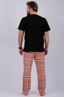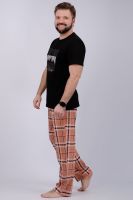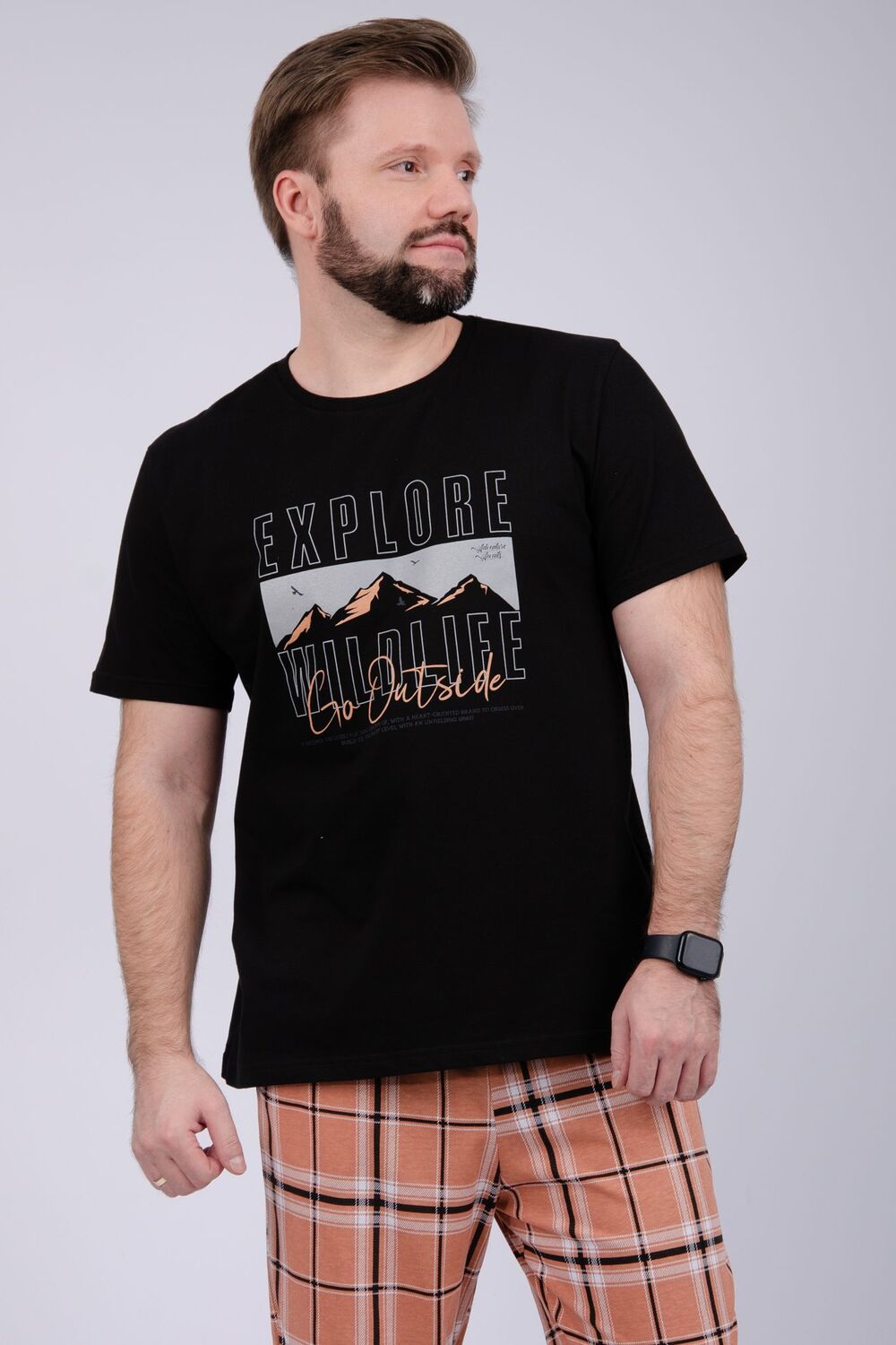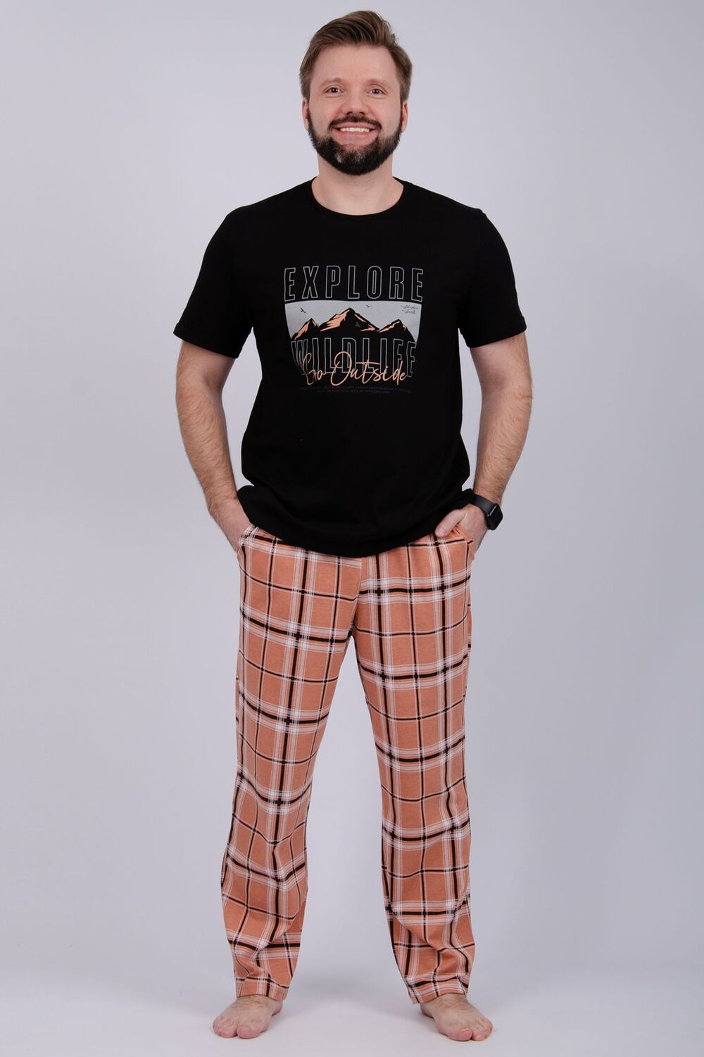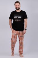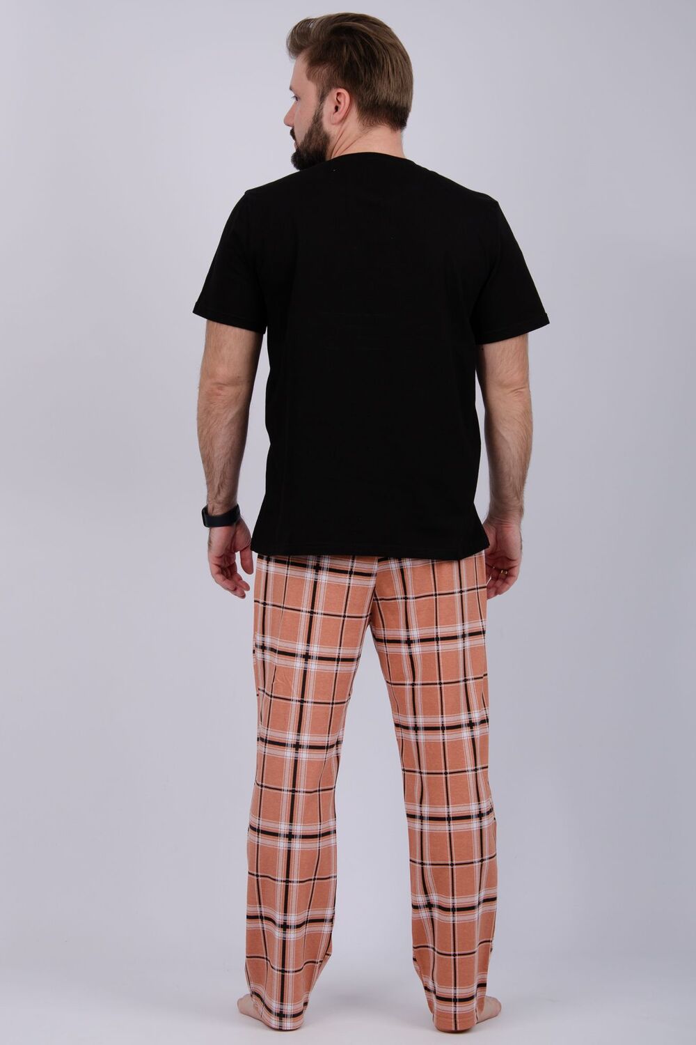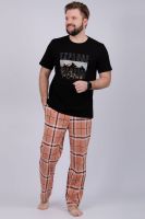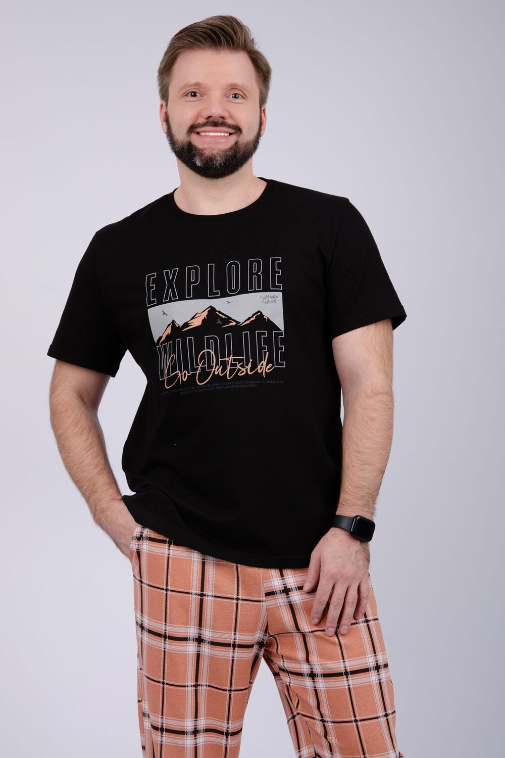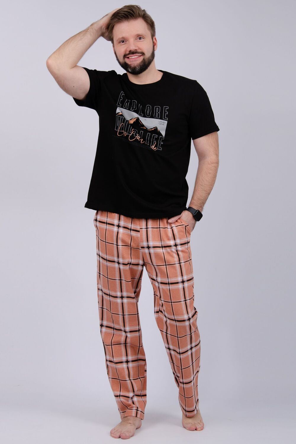 Пижама мужская: футболка прямого кроя с короткими рукавами с принтом на полочке, брюки прямые, с карманами в боковых швах.