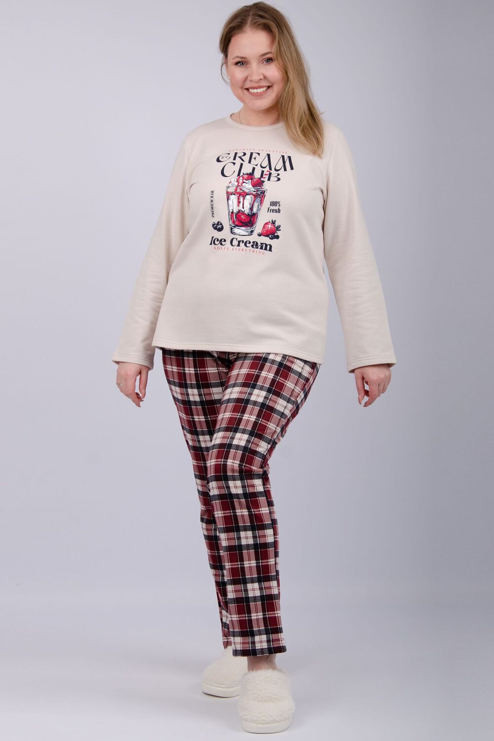 Этот комплект станет отличным выбором для холодных зимних вечеров, когда вам хочется обернуться теплом и комфортом. Мягкий и приятный на ощупь хлопок создает уютную атмосферу, что делает пижаму идеальной для носки как дома, так и на даче. Широкие брюки не сковывают движения, а легкий дизайн позволяет не ощущать дискомфорта во время сна.