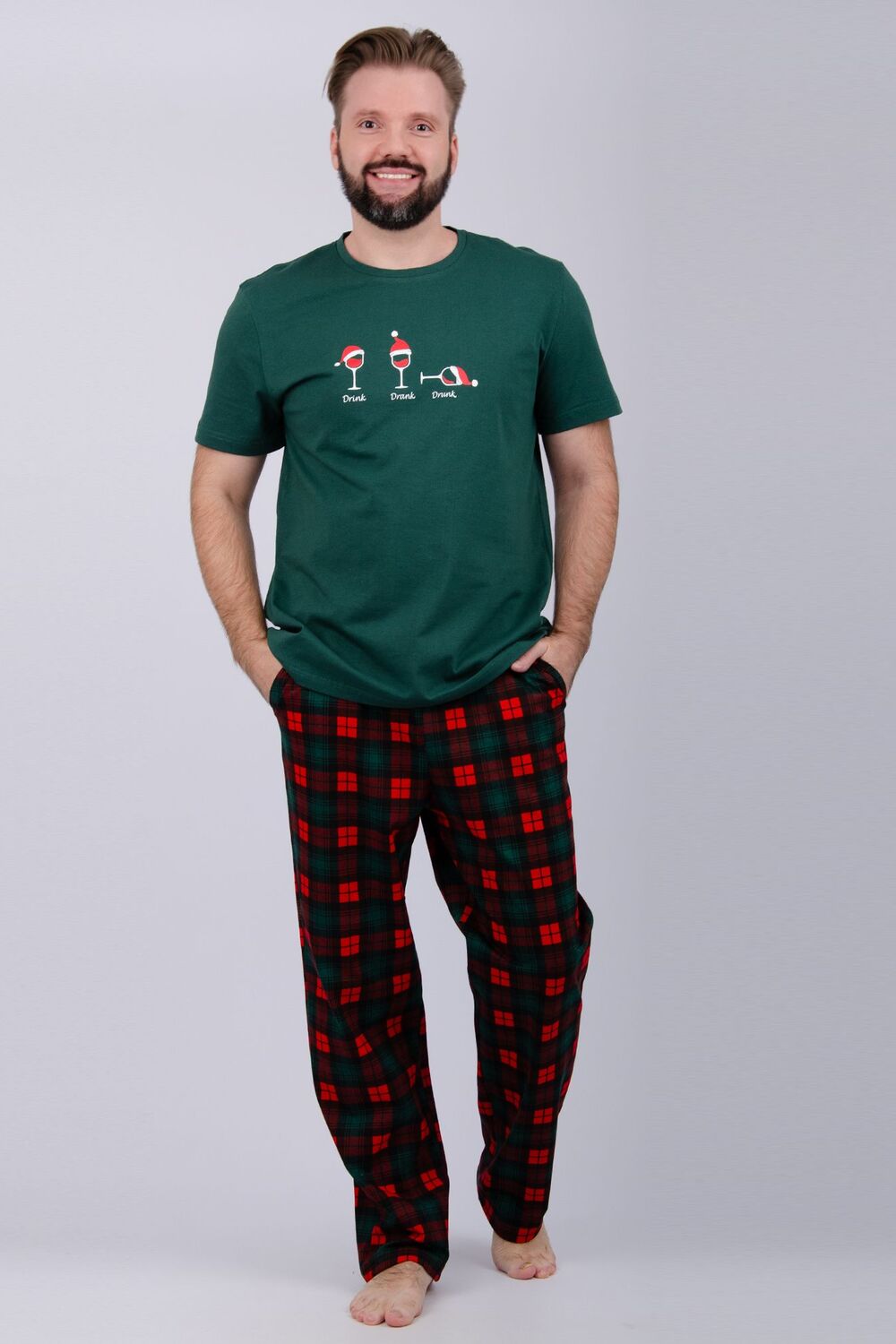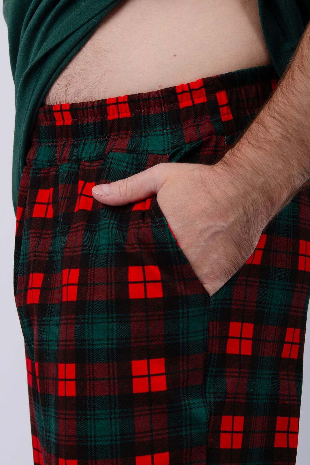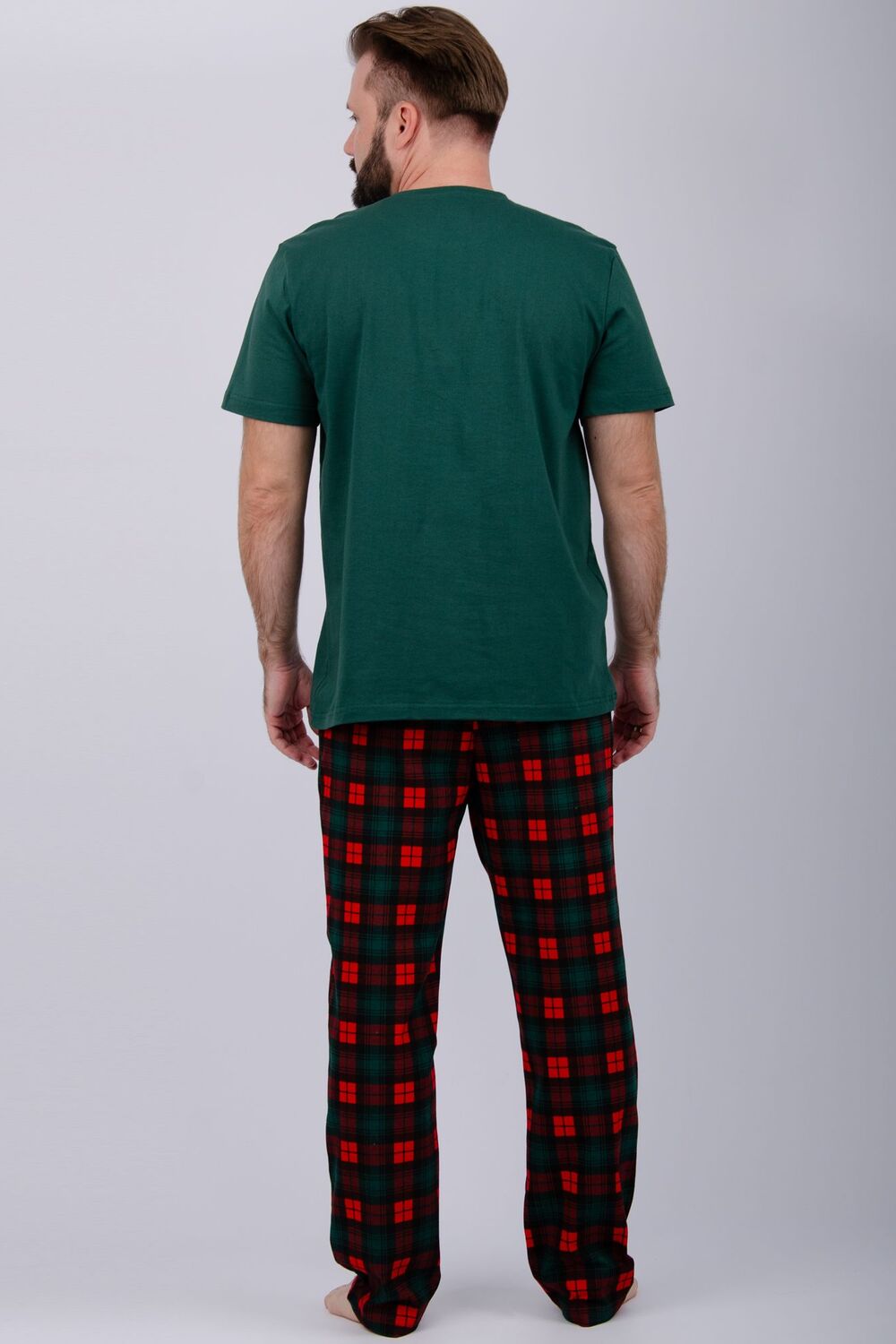 Комфортная мужская пижама из 100% хлопка - брюки с боковыми карманами, на эластичном поясе и футболка с коротким рукавом и стильным принтом на полочке.