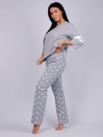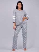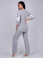 Пижама имеет теплый дизайн, что делает её отличным решением на прохладное время года. Благодаря свободному крою и легким материалам, вы сможете свободно двигаться, не ощущая никакого дискомфорта. Эта пижама особенно порадует тех, кто предпочитает модели больших размеров, создавая гармоничный и стильный образ на каждую ночь. Женская пижама с брюками станет вашим любимым элементом домашнего гардероба. Носите её с удовольствием в любое время дня – за чашкой кофе, во время чтения книги или просмотра любимого фильма. Эта домашняя одежда для женщин удобна и практична, а также стильно смотрится благодаря простому, но эффектному дизайну.