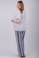 Наша пижама выполнена из мягкого и приятного на ощупь трикотажа, который обеспечивает максимальный комфорт во время сна и отдыха. Материал прекрасно дышит, не вызывает аллергии и раздражения кожи. Благодаря своей структуре он сохраняет тепло в холодное время года, и создает ощущение легкости и свежести в летнее время. Пижама представлена в нескольких размерах, включая большие, чтобы каждая женщина могла найти подходящий вариант, который подходит именно вам.