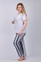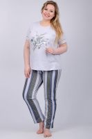 Пижама женская со штанами изготовлена из мягкой ткани (100 % хлопка), которая обладает дышащими и влаговпитывающими свойствами, идеально подходит для сна, обеспечивает максимальную практичность и воздухопроницаемость, облегчая сон даже в самые жаркие и холодные ночи. Женский домашний костюм состоит из стильной тонкой ночной футболки с коротким рукавом и легких брюк, которые создают комфортный домашний уют дома. Милая женская пижамка украшена принтом. Пижама женская яркая и в тоже время нежная, идеальна для беременных, будущих мам или в роддом, ведь в этой пижаме для беременных удобно весь день. Носить можно в любое время года: осенью или даже зимой под согревающим одеялом.