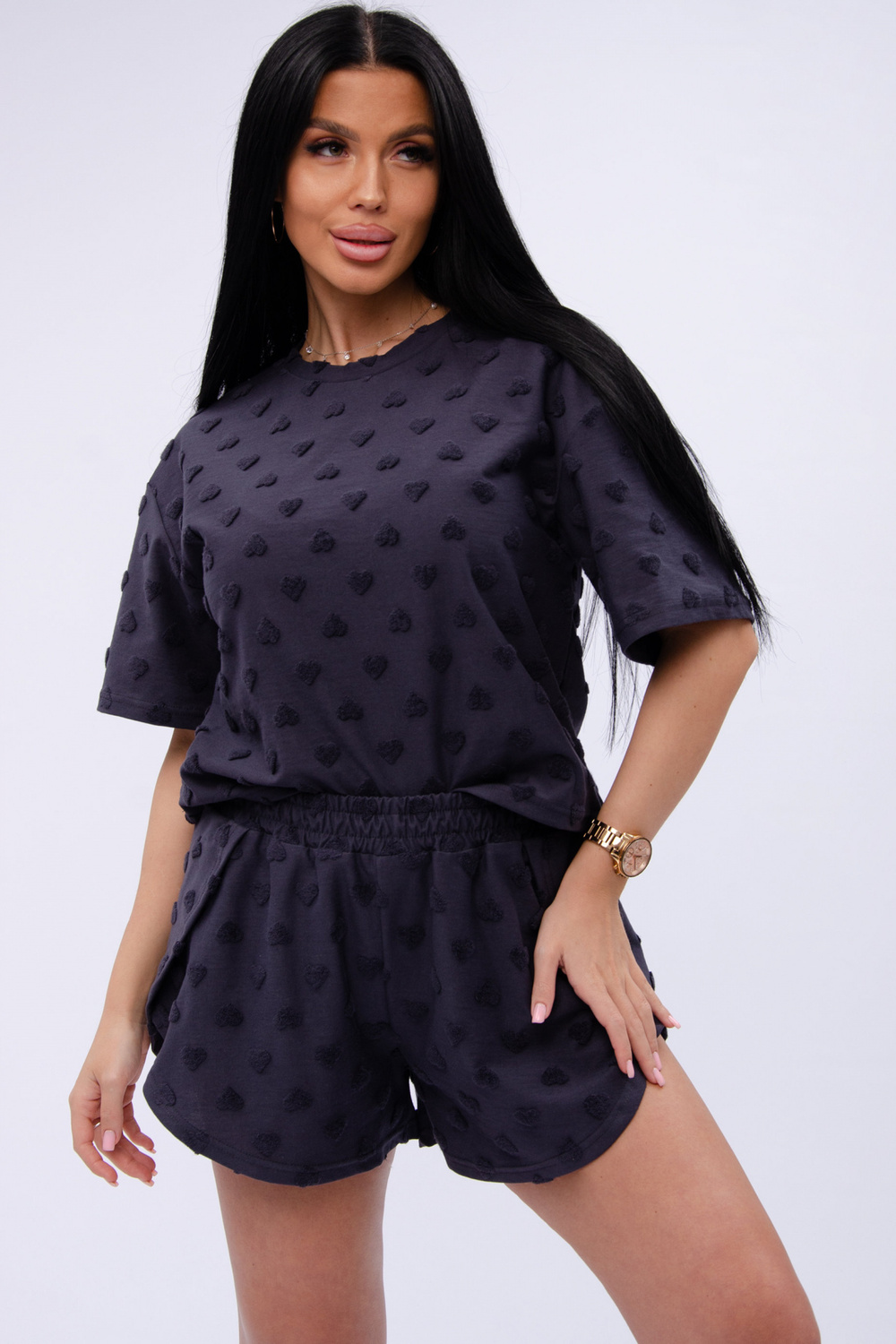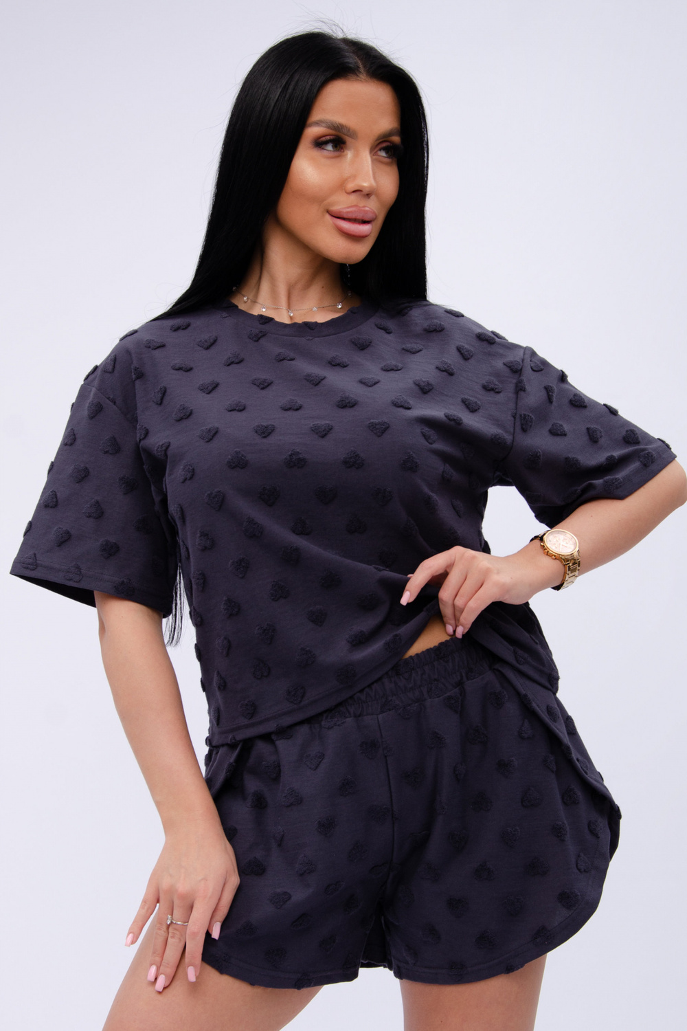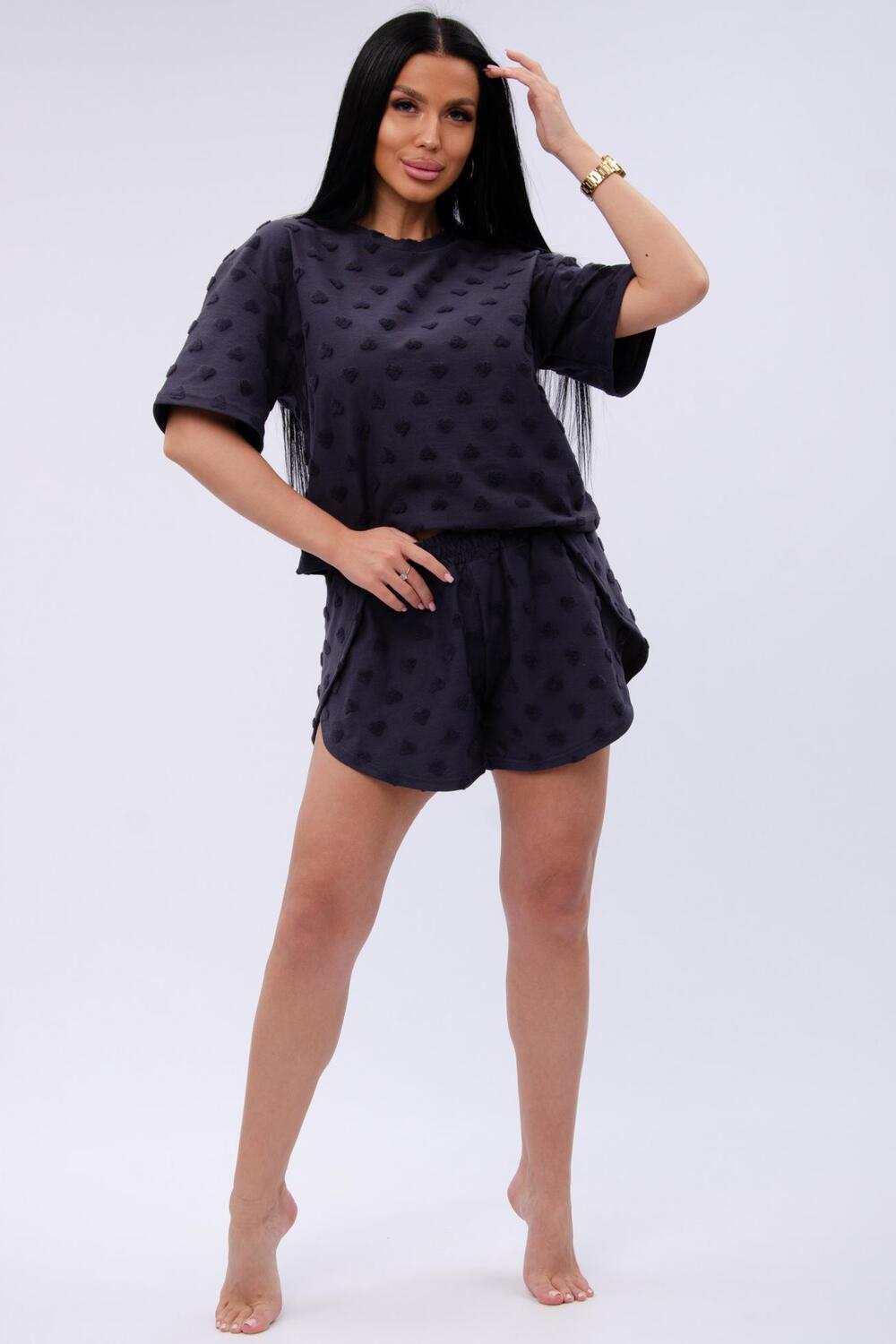 Пижама выполнена из мягкой трикотажной ткани, изготовленной из натурального хлопка, что предоставляет вам максимальное удобство. Короткий рукав футболки и удобные шорты с резинкой обеспечивают свободу движений. Свободный крой и оверсайз стиль делают её подходящей для всех, включая кормящих и беременных девушек. Этот комплект двойка — отличный выбор не только для дома и отдыха. Премиум качество и долговечность материалов гарантируют, что вы будете наслаждаться этой одеждой долгое время.