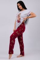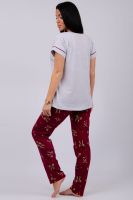 Пижама женская со штанами изготовлена из мягкой ткани (100 % хлопка), которая обладает дышащими и влаговпитывающими свойствами, идеально подходит для сна, обеспечивает максимальную практичность и воздухопроницаемость, облегчая сон даже в самые жаркие и холодные ночи. Женский домашний костюм состоит из стильной тонкой ночной футболки с коротким рукавом и легких брюк, которые создают комфортный домашний уют дома. Милая женская пижамка украшена стильным принтом. Пижама женская яркая и в тоже время нежная, идеальна для беременных, будущих мам или в роддом, ведь в этой пижаме для беременных удобно весь день. Носить можно в любое время года: осенью или даже зимой под согревающим одеялом.