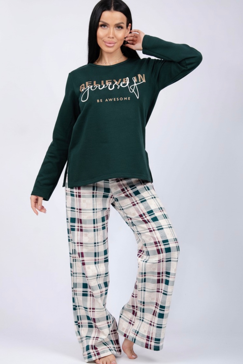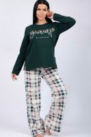 Пижама имеет теплый дизайн, что делает её отличным решением на прохладное время года. Благодаря свободному крою и легким материалам, вы сможете свободно двигаться, не ощущая никакого дискомфорта. Эта пижама особенно порадует тех, кто предпочитает модели больших размеров, создавая гармоничный и стильный образ на каждую ночь. Женская пижама с брюками станет вашим любимым элементом домашнего гардероба. Носите её с удовольствием в любое время дня – за чашкой кофе, во время чтения книги или просмотра любимого фильма. Эта домашняя одежда для женщин удобна и практична, а также стильно смотрится благодаря простому, но эффектному дизайну.