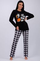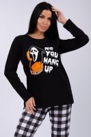 Пижама выполнена из мягкого и приятного на ощупь хлопка, который не раздражает кожу и обеспечивает хорошую вентиляцию. Материал обладает высокой прочностью и долговечностью, не теряет форму после стирки. В комплект входят брюки и кофта с длинным рукавом. Брюки имеют удобную посадку и не сковывают движений, а кофта украшена новогодним принтом, создающим праздничное настроение.