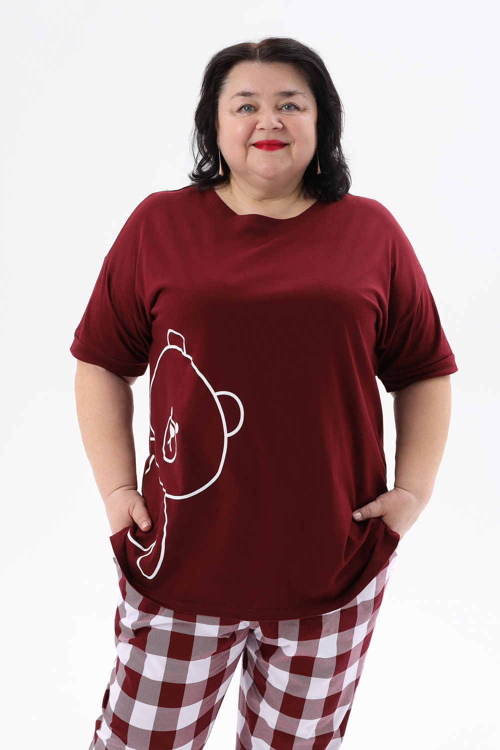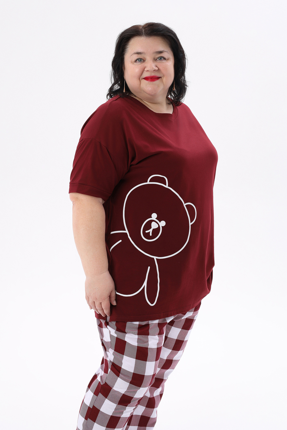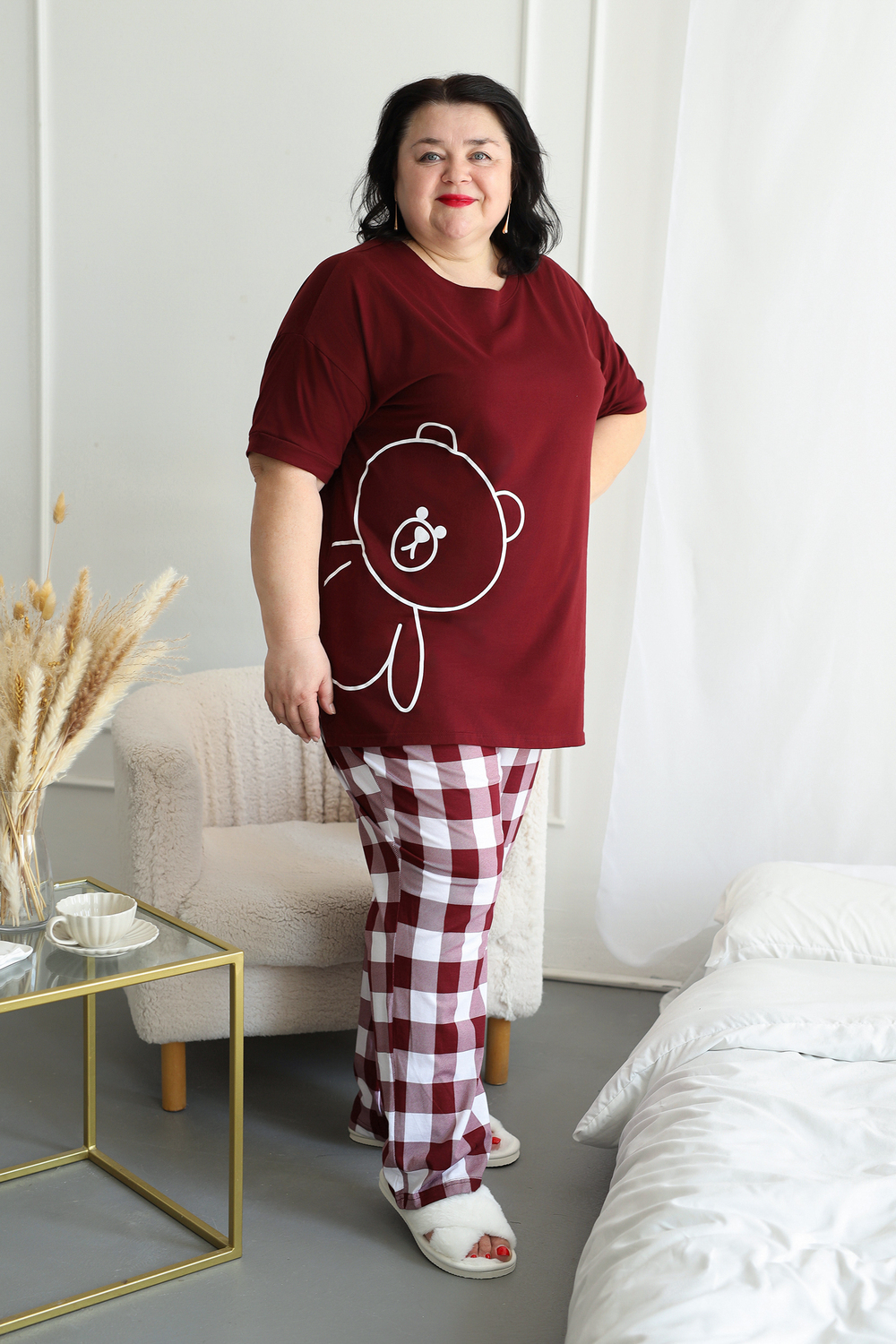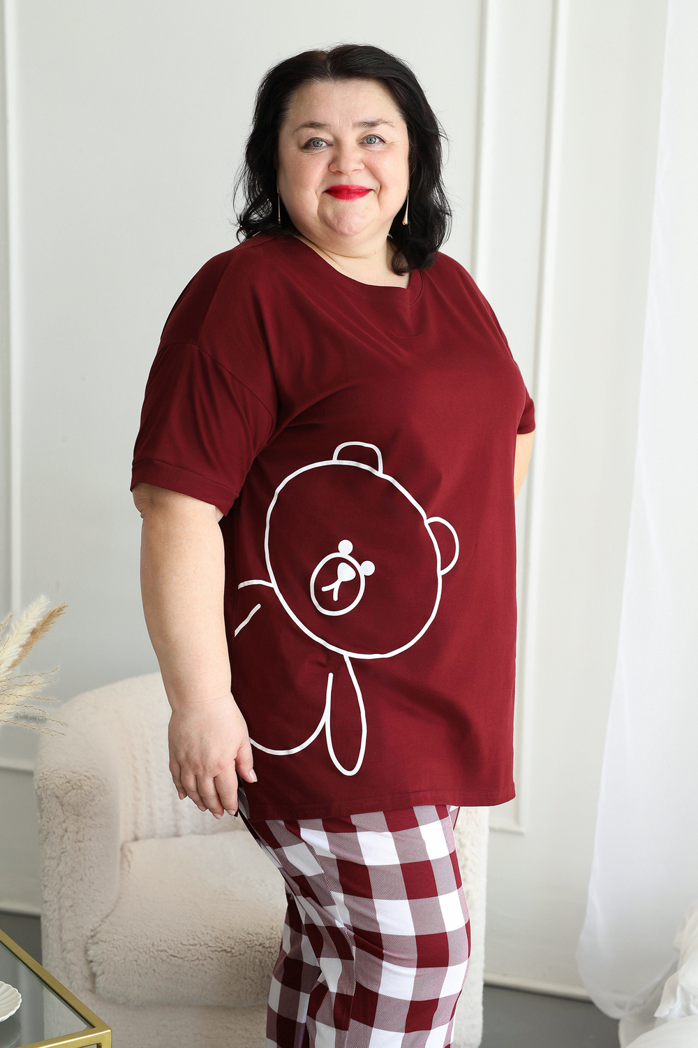 Представляем вам уютный и стильный домашний комплект от ВРазмере, созданный специально для комфортного отдыха. Пижама женская больших размеров порадует вас своей практичностью и привлекательным дизайном. Удлиненная футболка с милым принтом мишки и короткими рукавами создана для максимального комфорта, а свободные брюки в красную клетку на удобной резинке обеспечат свободу движений. Этот комплект станет идеальным выбором для женщин, ценящих уют и комфорт. Натуральный трикотаж из 100% хлопка приятен к телу и позволяет коже дышать, что особенно важно для чувствительной кожи. Пижама подходит для повседневного ношения дома, а также станет отличным подарком для любимых женщин. Благодаря универсальному дизайну, пижама подойдет как для высоких, так и для невысоких женщин. Стирка при температуре не более 40°C сохранит яркость красок и мягкость ткани. Побалуйте себя комфортом и стилем с пижамой DomTex!