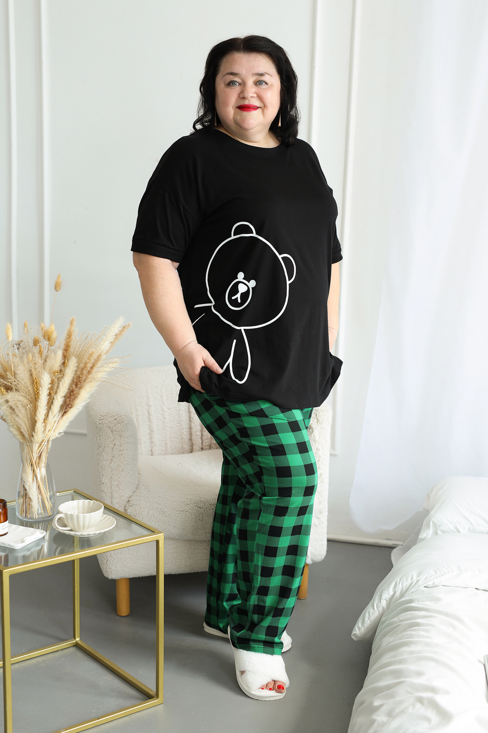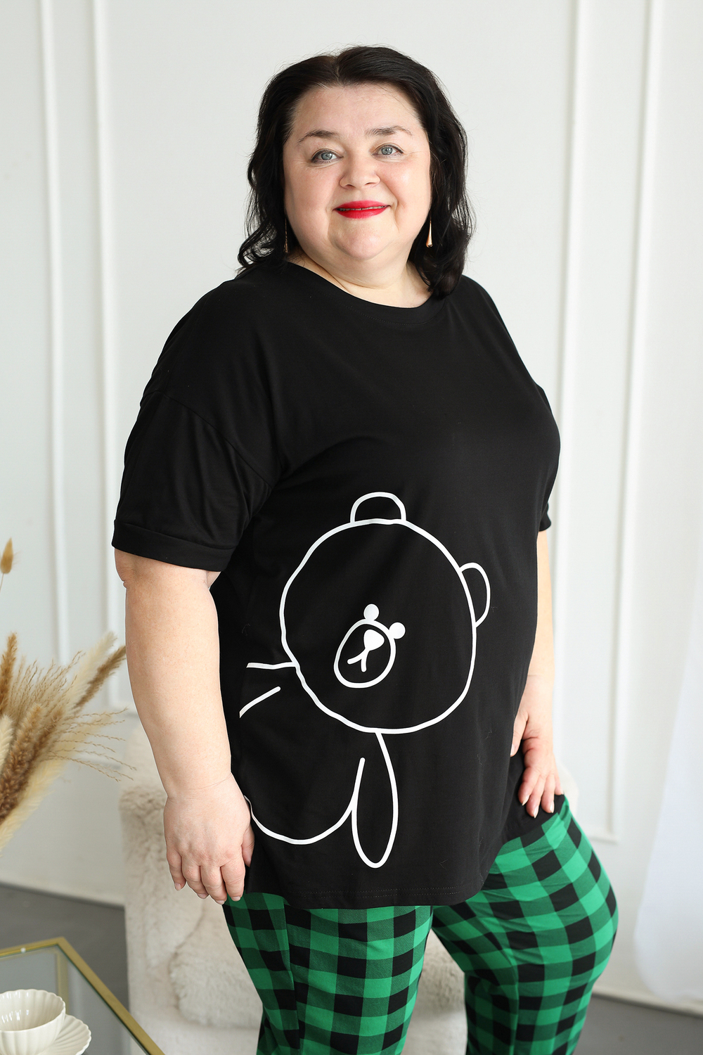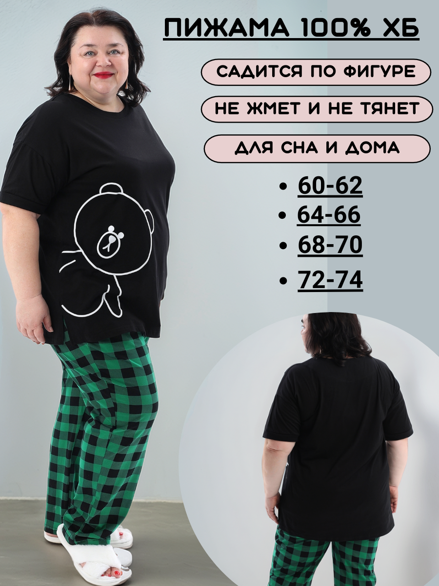 Представляем вам уютный и стильный домашний комплект от ВРазмере, созданный специально для комфортного отдыха. Пижама женская больших размеров порадует вас своей практичностью и привлекательным дизайном. Удлиненная футболка с милым принтом мишки и короткими рукавами создана для максимального комфорта, а свободные брюки в красную клетку на удобной резинке обеспечат свободу движений. Этот комплект станет идеальным выбором для женщин, ценящих уют и комфорт. Натуральный трикотаж из 100% хлопка приятен к телу и позволяет коже дышать, что особенно важно для чувствительной кожи. Пижама подходит для повседневного ношения дома, а также станет отличным подарком для любимых женщин. Благодаря универсальному дизайну, пижама подойдет как для высоких, так и для невысоких женщин. Стирка при температуре не более 40°C сохранит яркость красок и мягкость ткани. Побалуйте себя комфортом и стилем с пижамой DomTex!