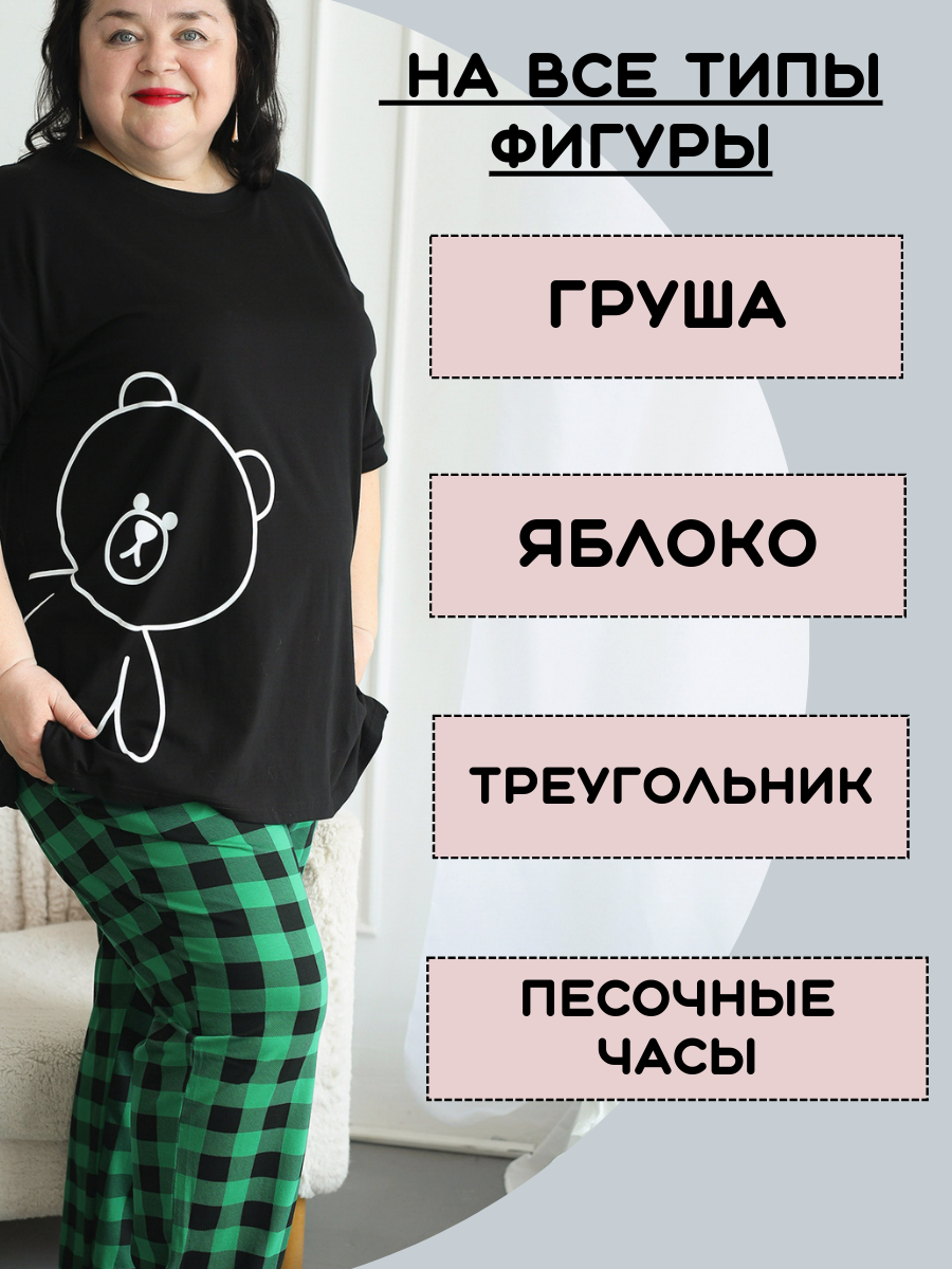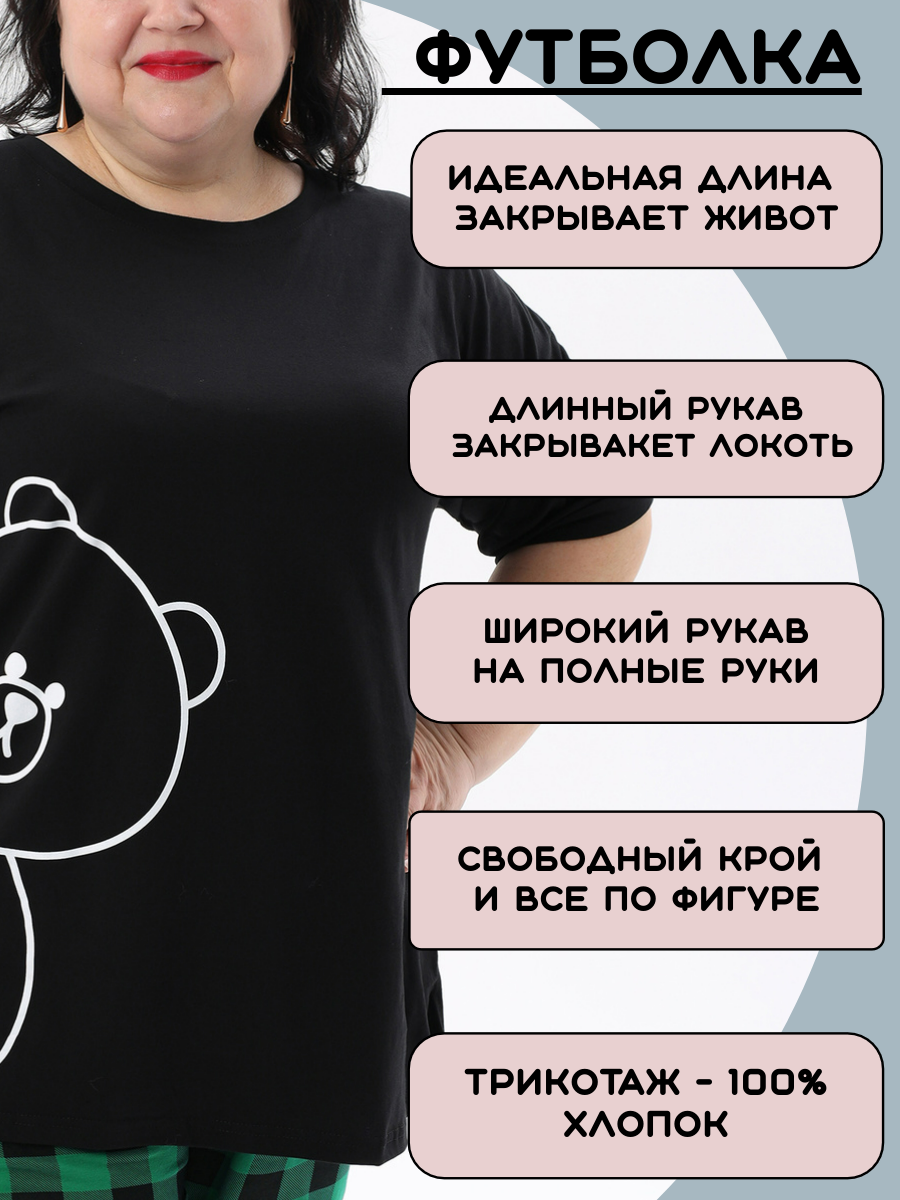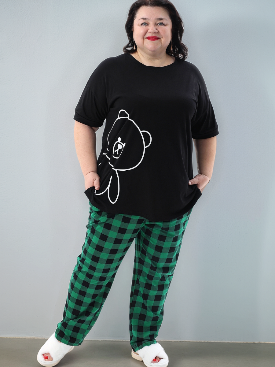 Представляем вам уютный и стильный домашний комплект от ВРазмере, созданный специально для комфортного отдыха. Пижама женская больших размеров порадует вас своей практичностью и привлекательным дизайном. Удлиненная футболка с милым принтом мишки и короткими рукавами создана для максимального комфорта, а свободные брюки в красную клетку на удобной резинке обеспечат свободу движений. Этот комплект станет идеальным выбором для женщин, ценящих уют и комфорт. Натуральный трикотаж из 100% хлопка приятен к телу и позволяет коже дышать, что особенно важно для чувствительной кожи. Пижама подходит для повседневного ношения дома, а также станет отличным подарком для любимых женщин. Благодаря универсальному дизайну, пижама подойдет как для высоких, так и для невысоких женщин. Стирка при температуре не более 40°C сохранит яркость красок и мягкость ткани. Побалуйте себя комфортом и стилем с пижамой DomTex!