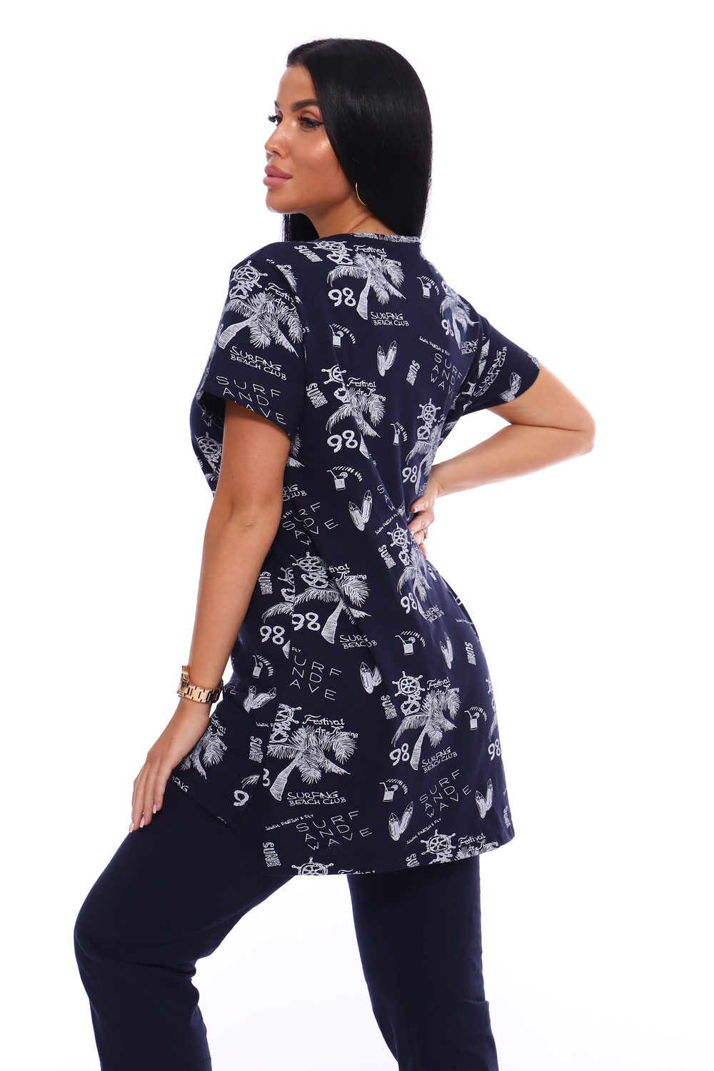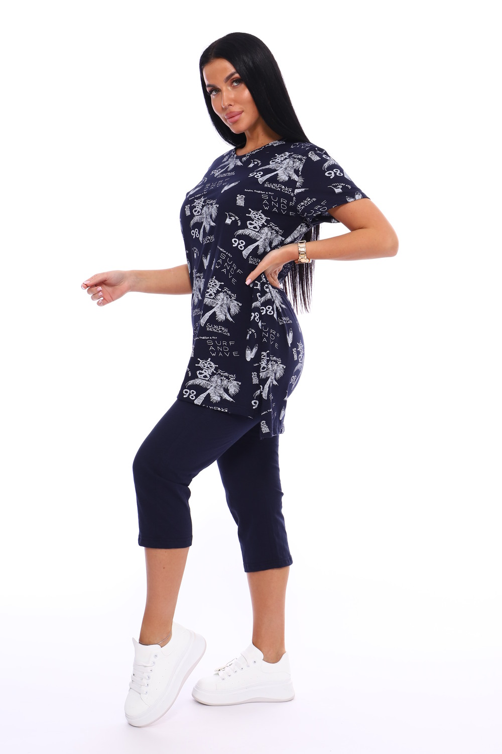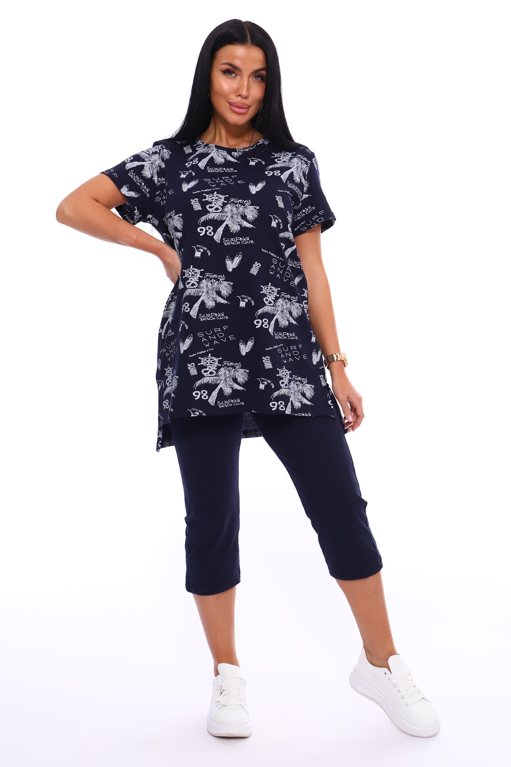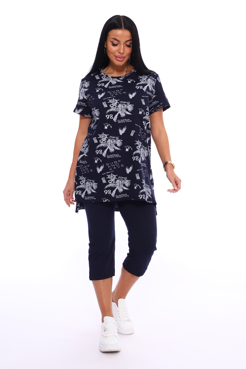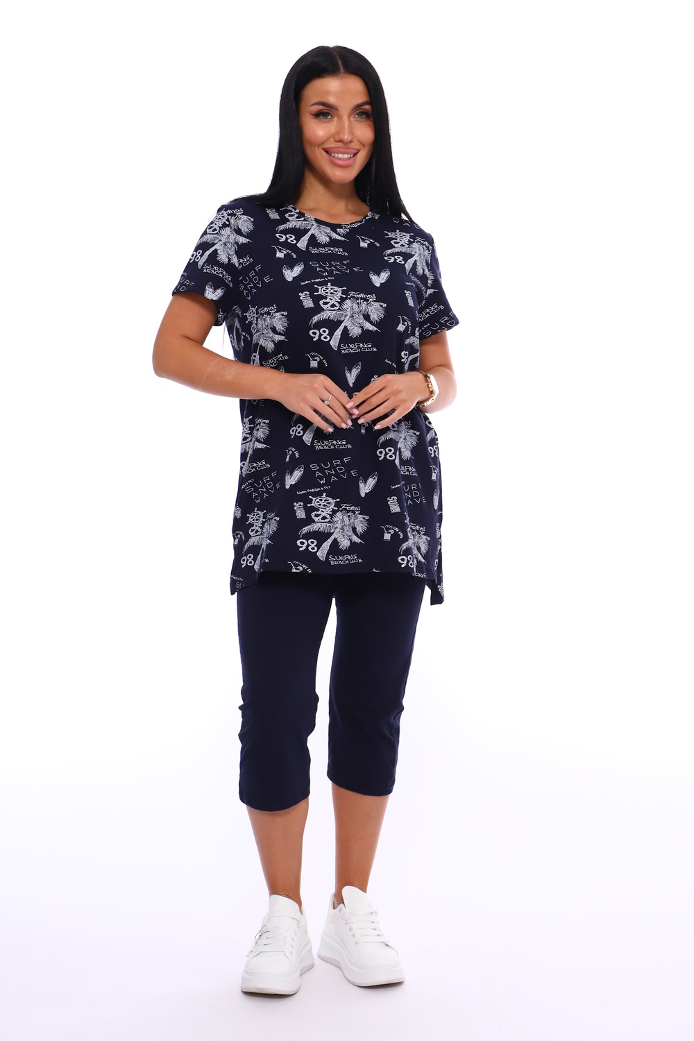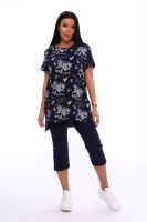 Домашний костюм с удлиненной футболкой оверсайз и бриджами из 100% хлопка. Идеально подойдет в качестве домашней одежды, на прогулку, в качестве пижамы. Хлопок тонкий и дышащий, покрой свободный - прекрасный вариант на дачу летом.