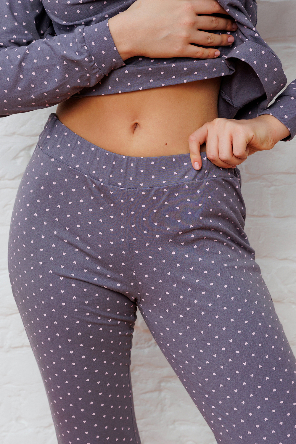 Комплект пижамный включает теплый лонгслив и брюки на резинке - теплые нательные изделия. Длинные рукава джемпера оформлены манжетами, которые не только добавляют элегантности и шика, но и позволяют сохранить тепло в холодные дни. Вырез горловины свитшота - круглый, что позволяет создать эффектное декольте и подчеркнуть грацию шеи и ключиц. Силуэт толстовки свободный, что обеспечивает максимальный комфорт и свободу движений. Одним из главных достоинств брюк является их пояс на эластичной резинке, который обеспечивает комфортную посадку. Благодаря свободному крою джоггеров, вы будете ощущать полную свободу движений, а натуральный хлопок обеспечит комфорт и мягкость на протяжении всего дня. Штаны женские пижамные оформлены манжетами. Комплект для сна выполнен из натурального хлопка, что обеспечивает идеальную вентиляцию и воздухопроницаемость. Это позволит вашей коже дышать и сохранит оптимальную температуру тела в любое время года. Пижама с сердечками идеальный выбор для пижамной вечеринки и отдыха на даче. Пижамка для фотосессии в домашнем стиле. Костюм домашний подойдет для подростков и высоких детей. Пижама станет отличным подарком.