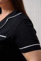 Женская пижама с шортами выполнена из мягкого и нежного хлопкового трикотажа кулирная гладь. Черная пижамка идеальна на каждый день. Натуральный 100% хлопок не электризуется и хорошо пропускает воздух. Рубашка с коротким рукавом имеет застежку на пуговицы. Рубашка прямого кроя не стесняет движения, а свободные шорты сделают ваш сон и домашний досуг максимально комфортными. В пижамке для женщин вы будете чувствовать себя очень свободно и уютно дома, на даче или на отдыхе.
