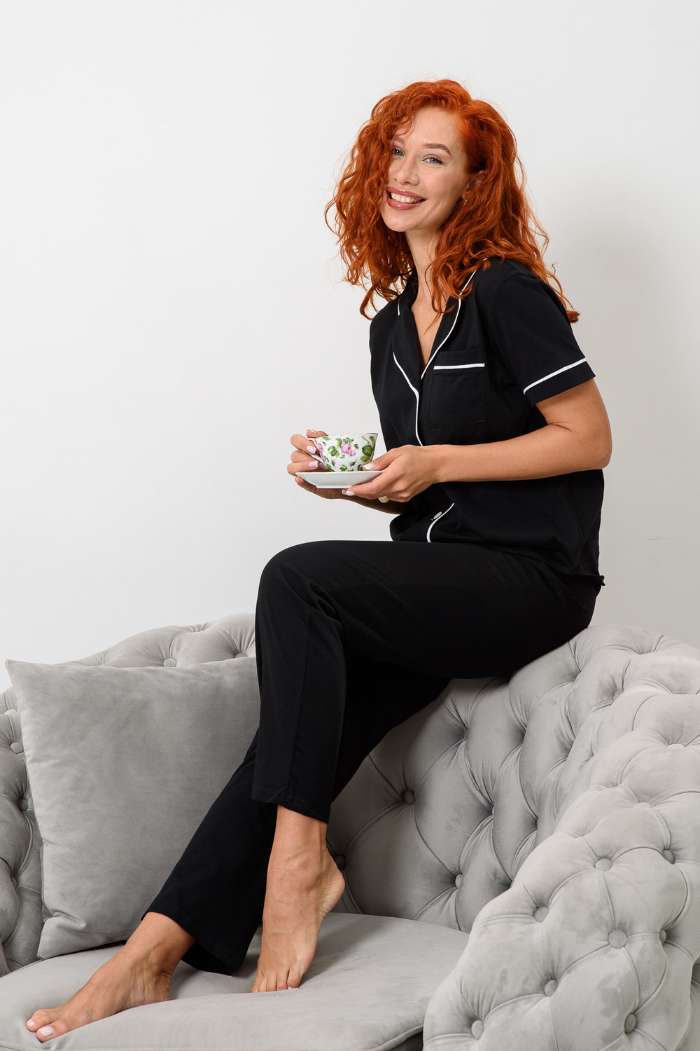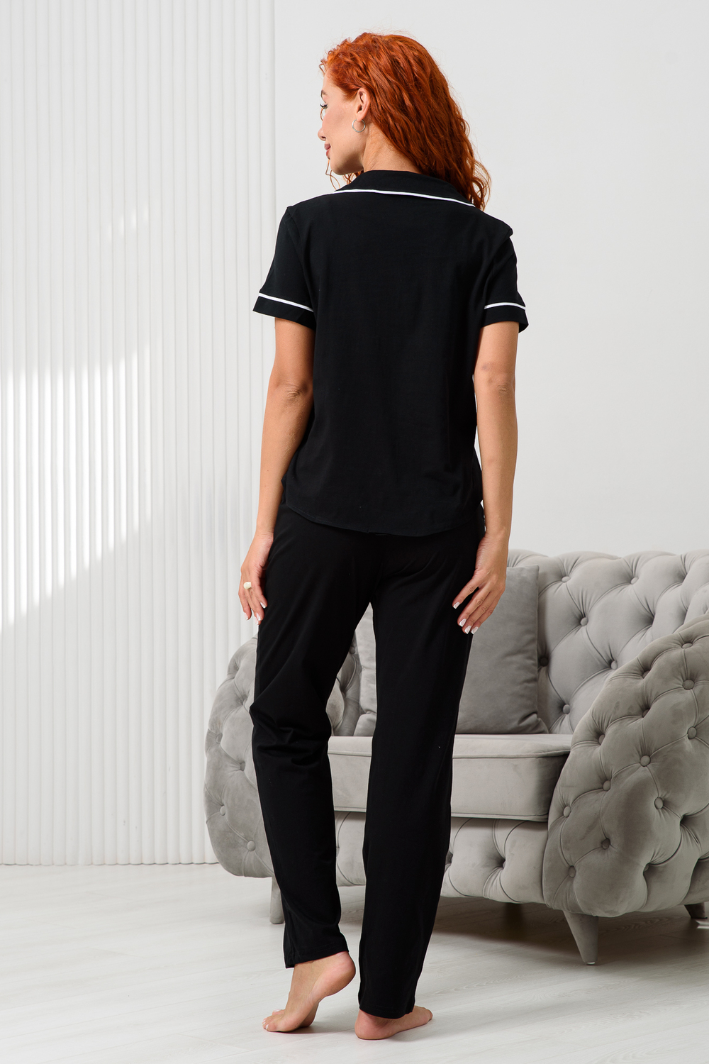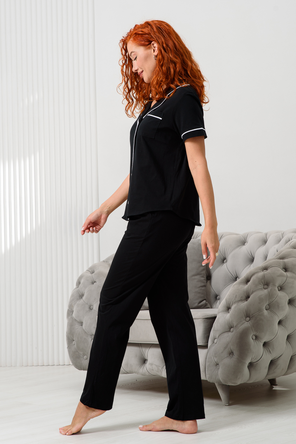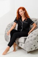 Приготовьтесь к уютным и стильным вечерам вместе с нашей лёгкой женской пижамой! Уютный пижамный комплект – это то, что Вам нужно, для комфортного ночного сна и вечернего отдыха! Домашний костюм из новой коллекции нашего бренда включает рубашку на пуговицах и штаны с высокой посадкой. Вещи сшиты из приятной к телу и хорошо дышащей хлопковой ткани. Они имеют прямой свободный крой, благодаря чему не стесняют движений и не доставляют дискомфорта. Рубашка с длинными рукавами и отложным воротником дополнена карманом на груди. Она отлично сочетается с брюками на эластичной резинке. Красивая и удобная пижамка подойдет взрослым женщинам и молодым девушкам. Это универсальный спальный комплект, который станет базовым в домашнем гардеробе девочек – подростков.