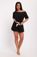 Пижама женская футболка и шорты. Футболка свободного кроя с широким вырезом горловины. Рукав короткий на спущенном плече.
