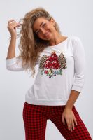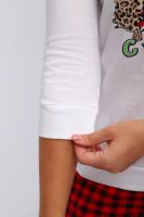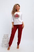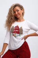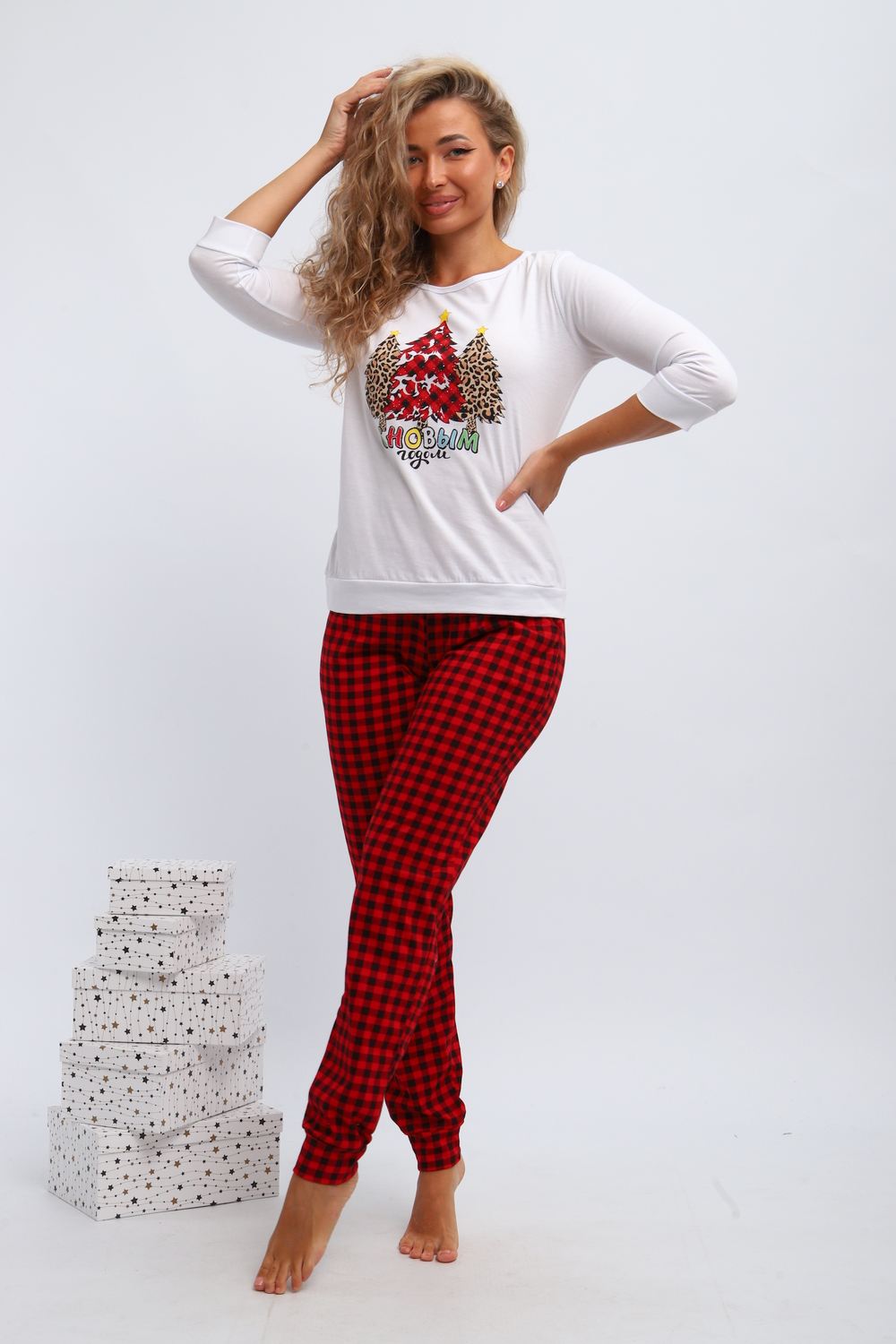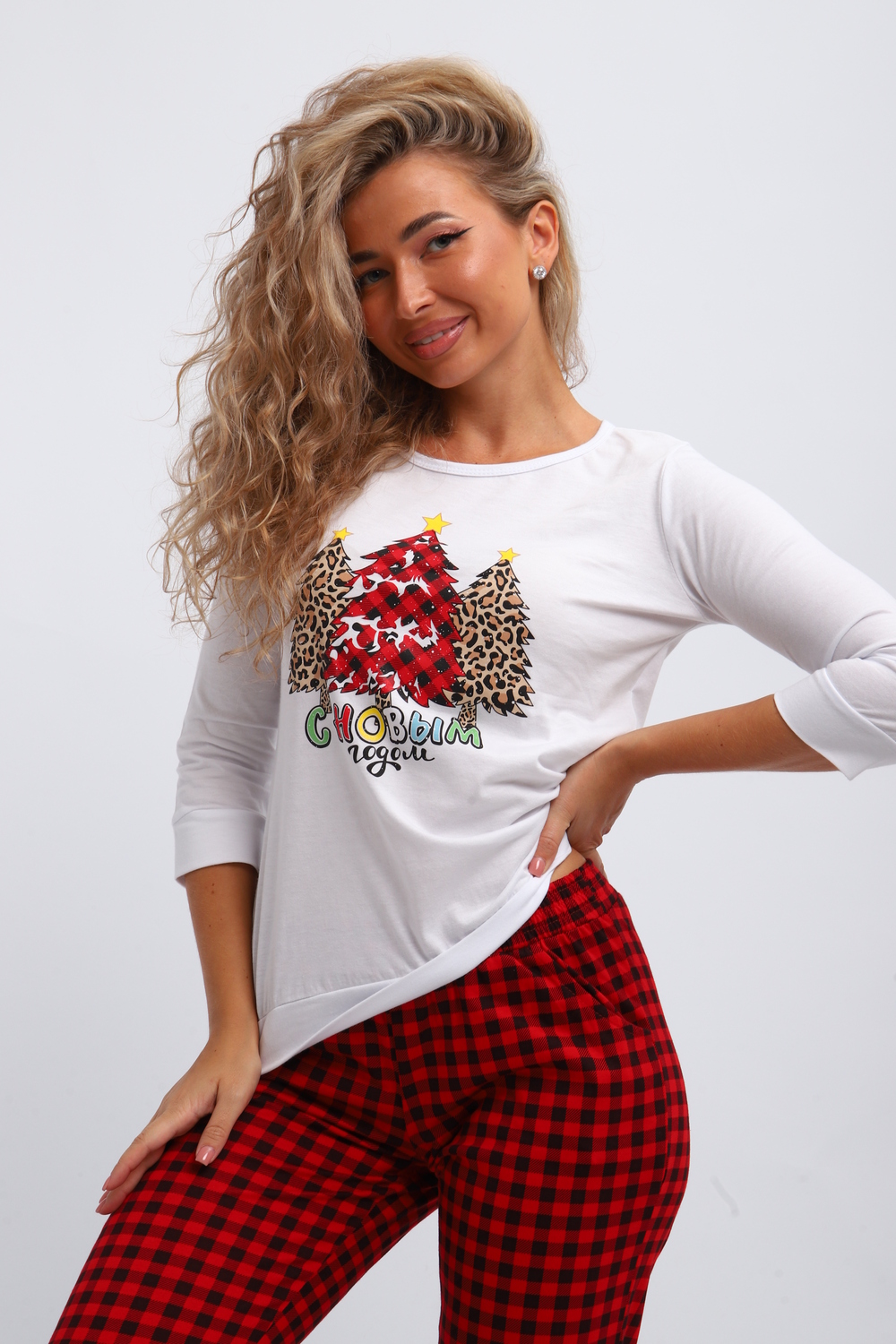Стильный и модный набор для дома, который станет отличным выбором для девушек и женщин. Этот комплект создан с учетом всех современных тенденций, обеспечивая комфорт и удобство повседневной носки. Трикотажный материал приятно ощущается на коже, благодаря чему костюм идеально подходит для отдыха и сна. Этот красивый пижамный комплект включает в себя уютную кофту с рукавами ? и брюками на резинке. Мягкий трикотаж обеспечивает свободу движений и комфорт в любое время суток. Одежда выполнена в ярком стиле, чтобы вы чувствовали себя привлекательно даже дома. Особенным украшением комплекта является оригинальный новогодний принт, создающий милый и игривый образ. Праздничный комплект "двойка" можно легко использовать как повседневную одежду дома или в роддоме. Брюками здесь выступают стильные джоггеры, которые делают внешний вид современным и непринужденным. Женский домашний костюм отлично подходит беременным женщинам благодаря свободному крою и мягкому материалу. Ивановские производители сделали акцент на высоком качестве тканей, что обеспечивает долговечность изделия без потери формы после многочисленных стирок. Костюм из хлопка покоряет своим лаконичным стилем: он подчеркивает естественную красоту хозяек благодаря простоте линий и одновременно яркости деталей. Этот брючный комплект — идеальный выбор для домашнего отдыха либо сна; он помогает расслабиться после долгого дня. Дизайн сочетает в себе элементы классики и трендов моды, поэтому пижама будет актуальна долгое время разным поколениям женщин. Костюм с рисунком ёлочек для подростков из хлопка покоряет своим лаконичным стилем: он подчеркивает естественную красоту хозяек благодаря простоте линий и одновременно яркости деталей.