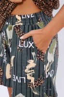 Представляем вашему вниманию женскую хлопковую пижаму с шортами больших размеров – идеальное сочетание комфорта и стиля для женщин с пышными формами. Эта пижама станет вашим любимым спутником для спокойного сна и уютных вечеров дома. Хлопок – это натуральное волокно, которое славится своей мягкостью и воздухопроницаемостью. Наша пижама изготовлена из высококачественного хлопка, который нежно ласкает вашу кожу и обеспечивает максимальный комфорт в течение всей ночи. Ткань прекрасно отводит влагу и позволяет вашей коже дышать, что особенно важно для женщин с чувствительной кожей. Эта пижама большого размера разработана с учетом потребностей женщин с пышными формами. Свободный крой обеспечивает максимальную свободу и не сковывает ваши движения. Мягкая резинка на талии обеспечивает надежную фиксацию без сдавливания. Шорты имеют удобную длину, что позволяет вам чувствовать себя комфортно и уверенно. Наслаждайтесь стильным и современным дизайном даже во время сна. Наша пижама с шортами имеет модный принт, который добавит изюминку в ваш домашний гардероб. Вы можете выбрать из множества расцветок и узоров, чтобы подобрать идеальную модель для своего вкуса. Эта хлопковая пижама с шортами больших размеров универсальна и подходит для различных случаев. Она идеально подходит для спокойного сна, уютных вечеров дома, просмотра фильмов или чтения книг. Мягкая ткань и свободный крой обеспечат вам максимальный комфорт и релаксацию. Уход за нашей хлопковой пижамой очень прост. Ее можно стирать в стиральной машине в деликатном режиме. Ткань не мнется и не теряет форму со временем, что позволяет вашей пижаме выглядеть безупречно даже после многочисленных стирок. Окунитесь в мир комфорта и стиля с нашей женской хлопковой пижамой с шортами больших размеров. Побалуйте себя мягкой и нежной тканью, насладитесь свободой движений и продемонстрируйте свой безупречный вкус. Закажите свою сегодня и начните каждую ночь и день с комфорта и уверенности!