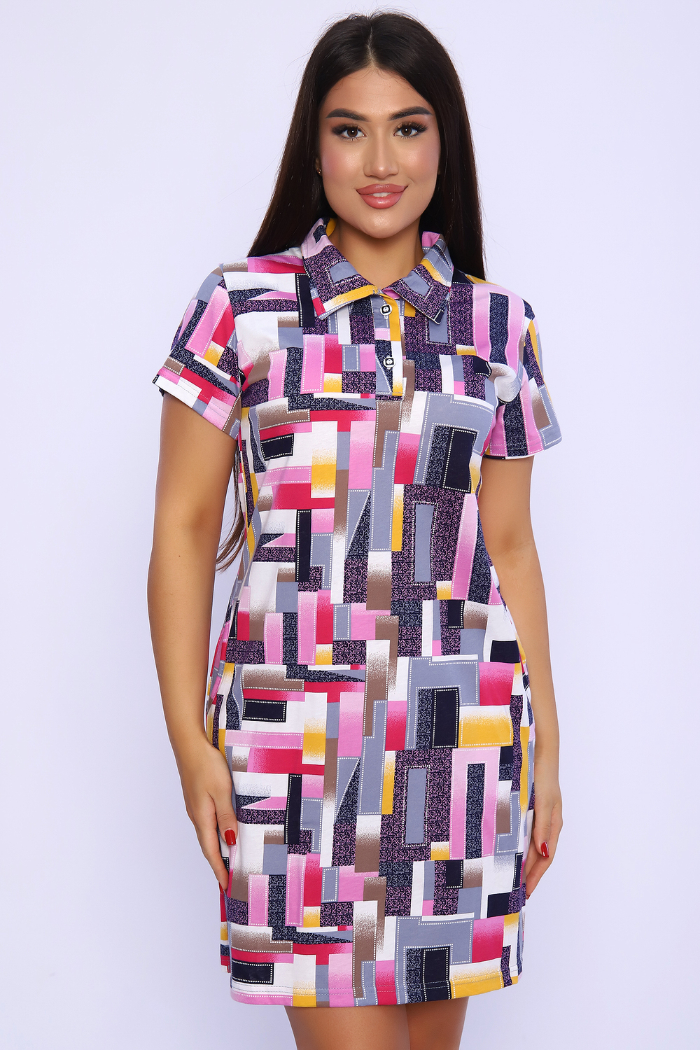 Платье женское оригинальной расцветки средней длины выполнено из кулирки 100% хлопок. Воротник рубашечный, планка на пуговицах, по бокам карманы и разрезы. Платье идеально подойдет как для дома, так и для прогулок и отдыха.