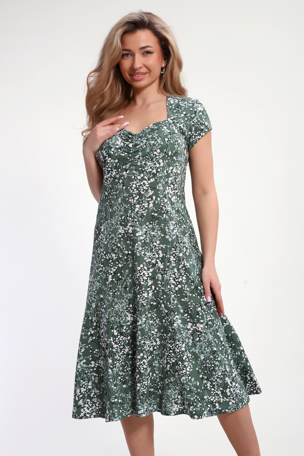 Легкое летнее платье выполнено из кулирки 100% хлопок яркой оригинальной расцветки. Платье средней длины, приталенное, к низу расклешенное, рукав короткий, в области груди со сборкой. Идеально подойдет для прогулок и отдыха.