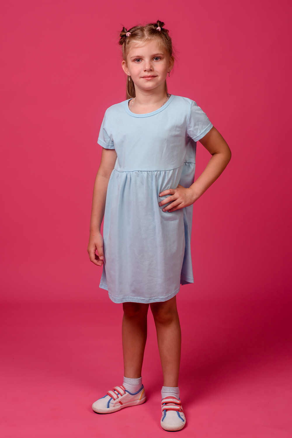 Платье детское - отличный вариант на каждый день. Платье для девочки с завышенной линией талии имеет округлый вырез горловины, короткий рукав и юбку со сборкой. Платье детское трикотажное из натурального хлопка очень приятно к телу и позволяет маленькой моднице с комфортом заниматься своими обычными делами. Платье для девочки прекрасно подойдёт для походов в детский сад, игр на детской площадке, прогулок по городу и других мероприятий, имеющих место в жизни ребёнка. Платье детское трикотажное имеет стильный дизайн. Такое платье в подарок порадует каждую маленькую представительницу прекрасного пола! Материал хлопок - не требует особого ухода, достаточно лишь соблюдать рекомендации по стирке, которые можно найти на ярлыке изделия.