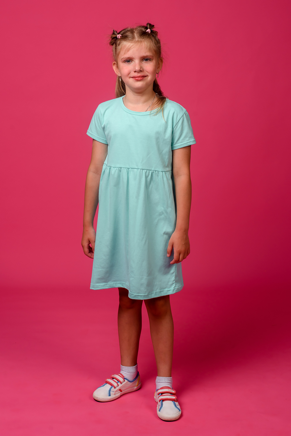Платье детское - отличный вариант на каждый день. Платье для девочки с завышенной линией талии имеет округлый вырез горловины, короткий рукав и юбку со сборкой. Платье детское трикотажное из натурального хлопка очень приятно к телу и позволяет маленькой моднице с комфортом заниматься своими обычными делами. Платье для девочки прекрасно подойдёт для походов в детский сад, игр на детской площадке, прогулок по городу и других мероприятий, имеющих место в жизни ребёнка. Платье детское трикотажное имеет стильный дизайн. Такое платье в подарок порадует каждую маленькую представительницу прекрасного пола! Материал хлопок - не требует особого ухода, достаточно лишь соблюдать рекомендации по стирке, которые можно найти на ярлыке изделия.