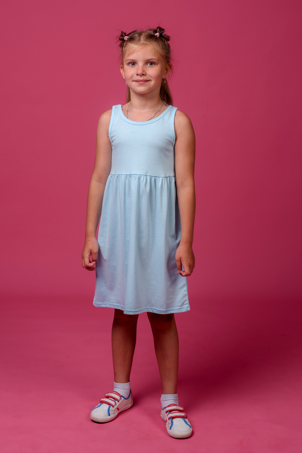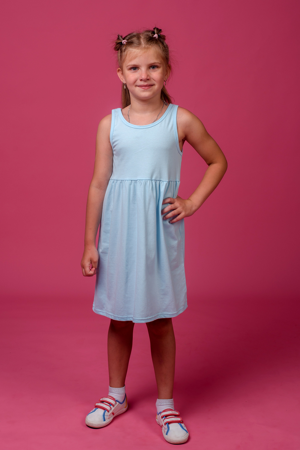 Платье детское - отличный вариант на каждый день. Платье для девочки с завышенной линией талии имеет округлый вырез горловины и юбку со сборкой. Платье детское трикотажное из натурального хлопка очень приятно к телу и позволяет маленькой моднице с комфортом заниматься своими обычными делами. Платье для девочки прекрасно подойдёт для походов в детский сад, игр на детской площадке, прогулок по городу и других мероприятий, имеющих место в жизни ребёнка. Платье детское трикотажное имеет стильный дизайн. Такое платье в подарок порадует каждую маленькую представительницу прекрасного пола! Материал хлопок - не требует особого ухода, достаточно лишь соблюдать рекомендации по стирке, которые можно найти на ярлыке изделия.