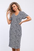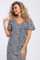 Платье полуприлегающего силуэта с V - образным вырезом горловины и сборкой над грудью. Рукава короткие со сборкой по окату.
